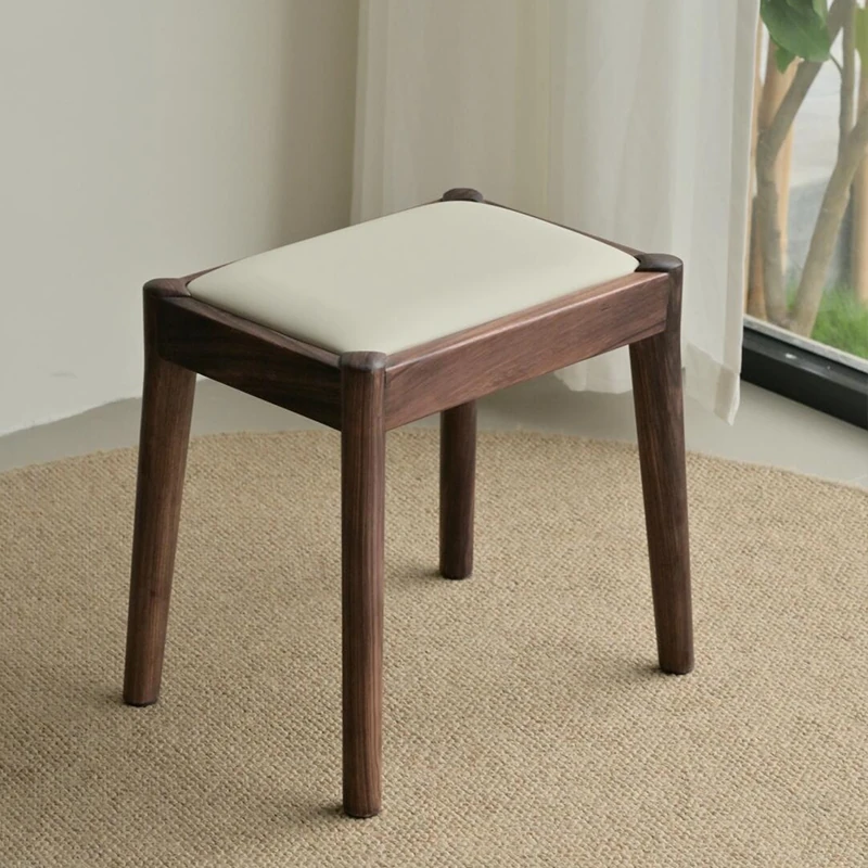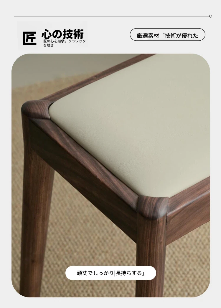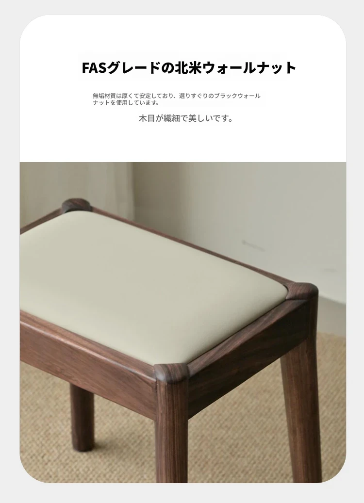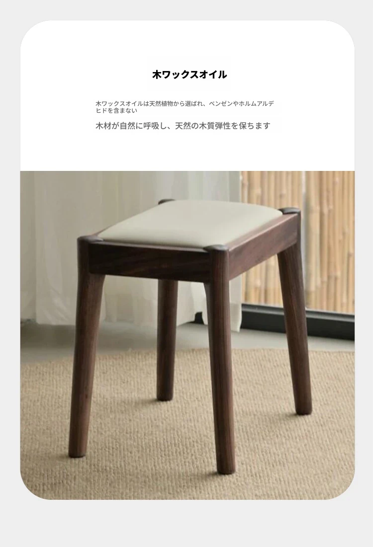 高級感溢れる天然木製スツール!皮革仕立てで、リビングやドレッサー、デスク用にも最適。玄関での靴の脱ぎ履きもスムーズに。どんなインテリアにもマッチするシンプルでスタイリッシュなデザイン!