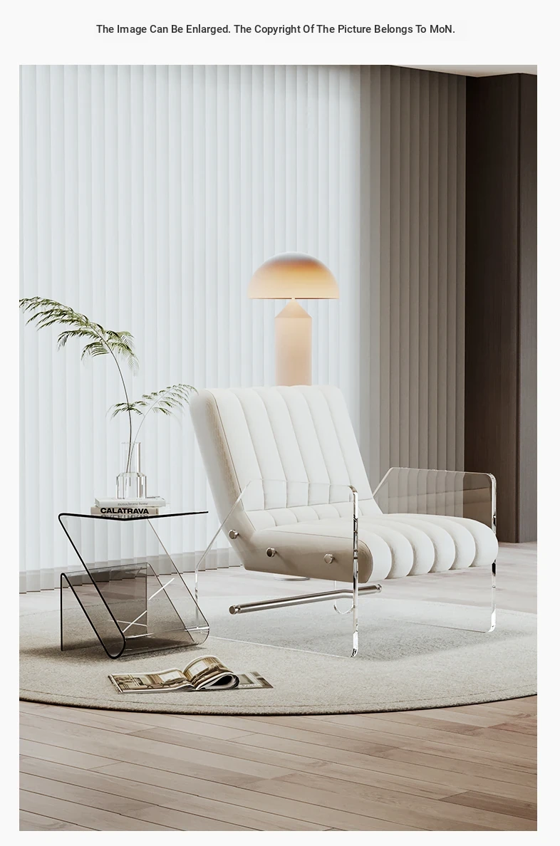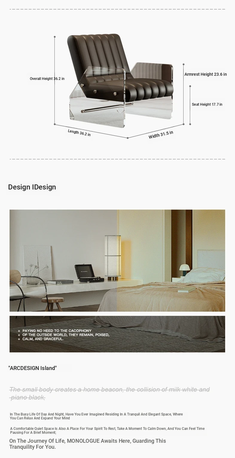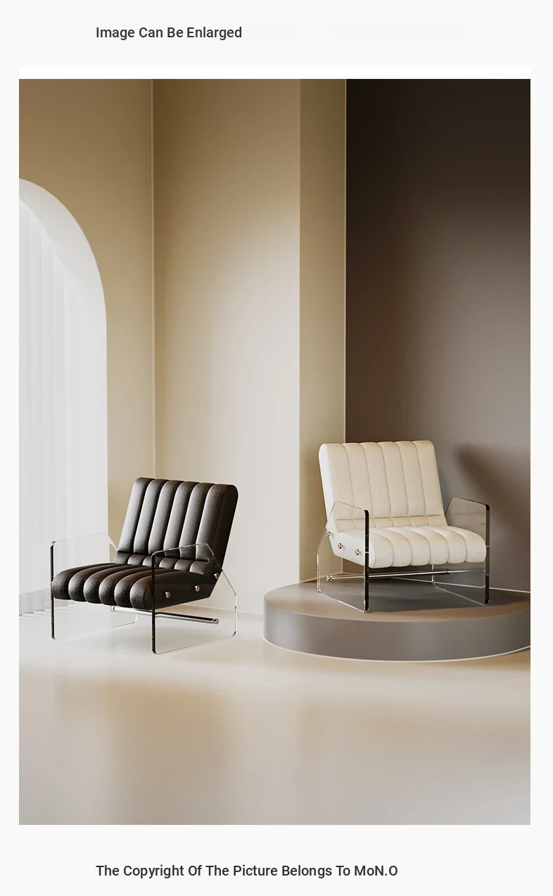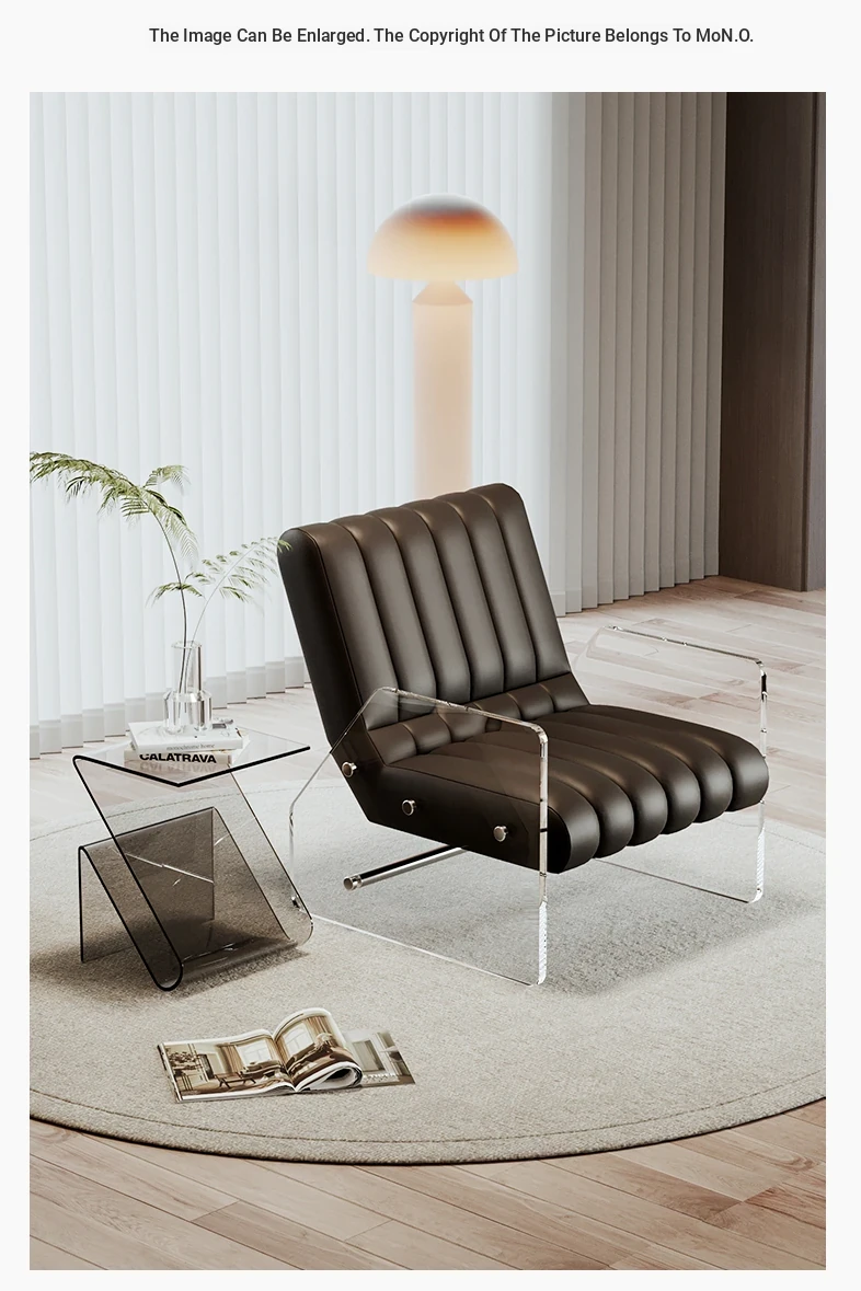 Transparent Acrylic Floating Single Sofa - High-End Leather Recliner for Bedroom and Living Room - Designer Luxury Lounge Chair for Ultimate Relaxation