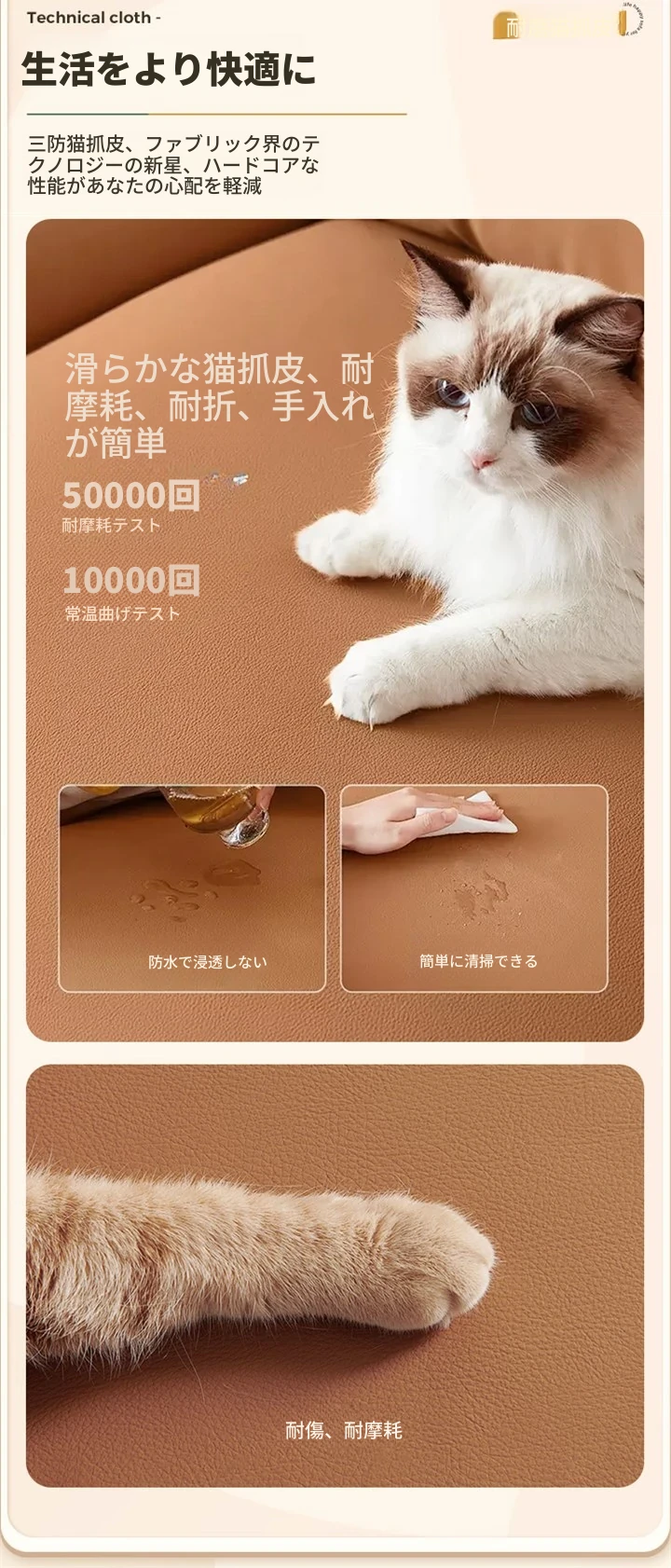 猫抓皮【キャラメルオレンジ】手動タイプ