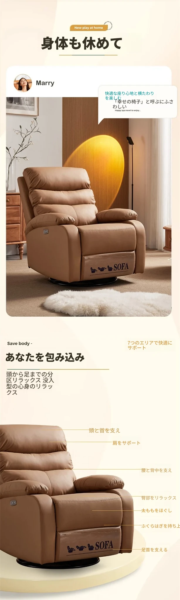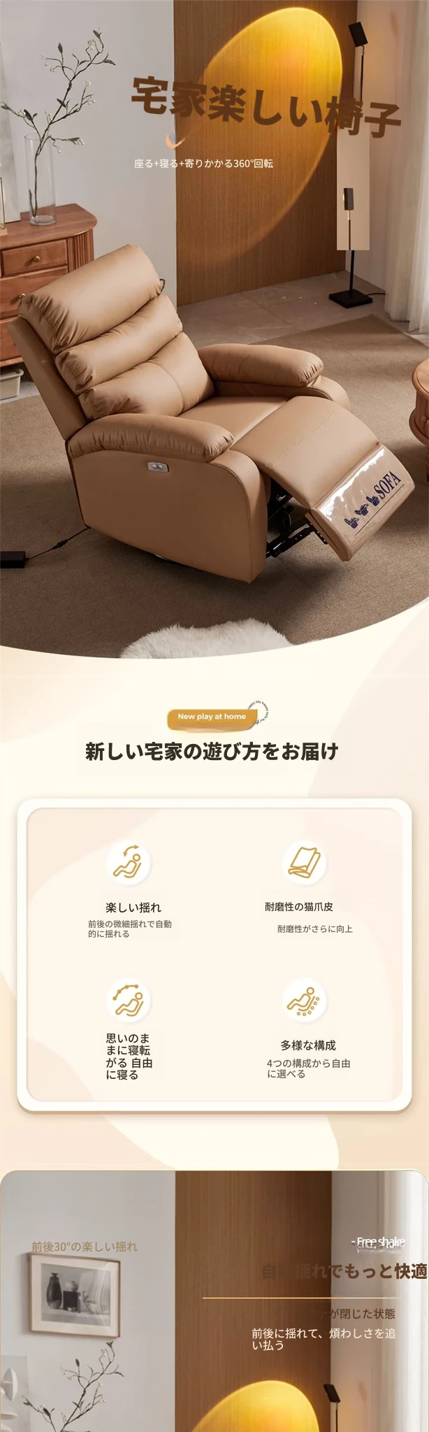 大人気のファーストクラス宇宙カプセルソファ!多機能電動リクライニングチェア、リビングや寝室にぴったりのコンパクトサイズ。揺れ動き、リラックスできる極上のひとときを提供します!