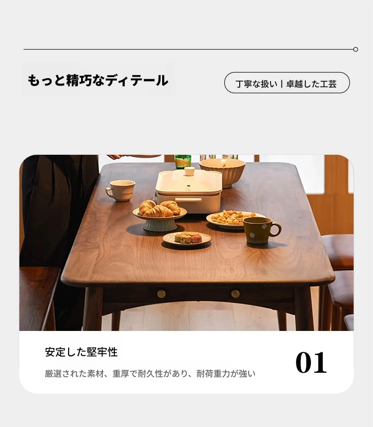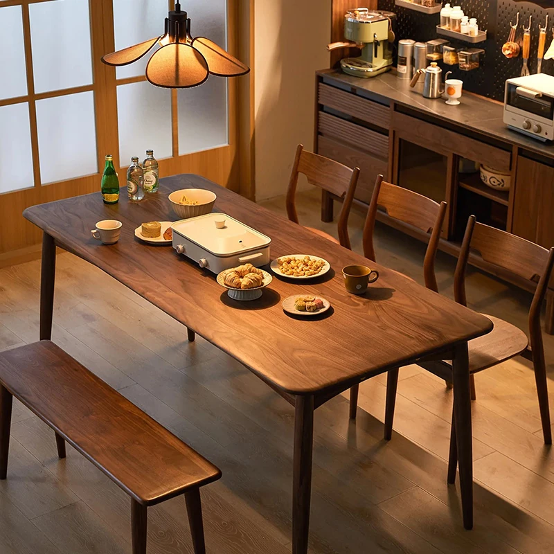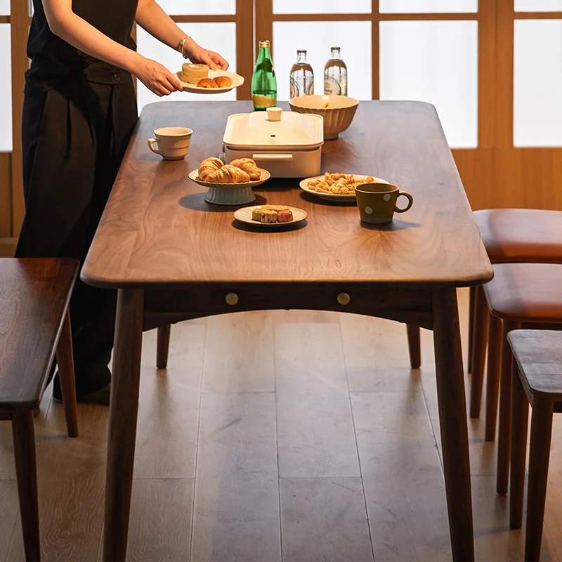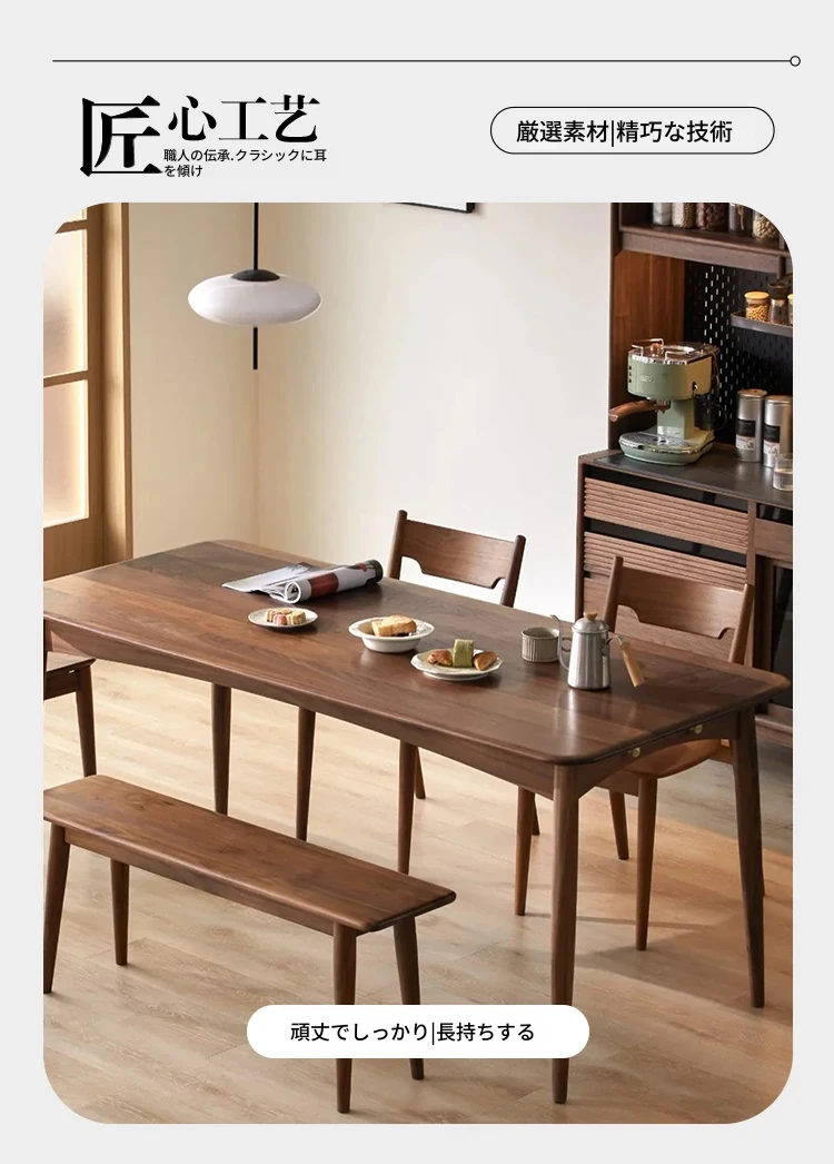 新中式実木製の多機能茶卓 - 食卓と茶卓の一体型、リビングやオフィスに最適な禅の雰囲気を持つウォールナット製ティーテーブル。心地よいひとときを演出します!