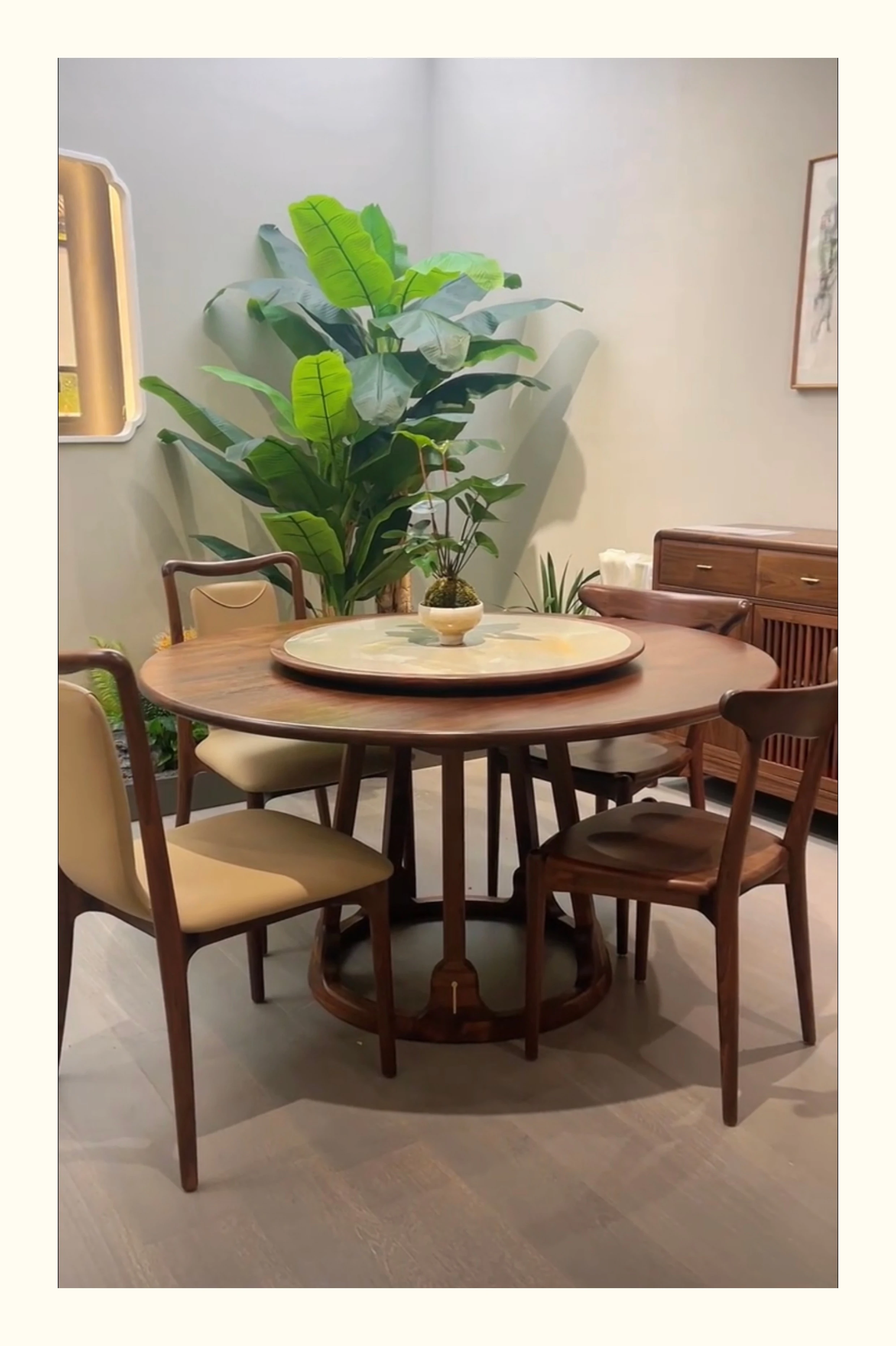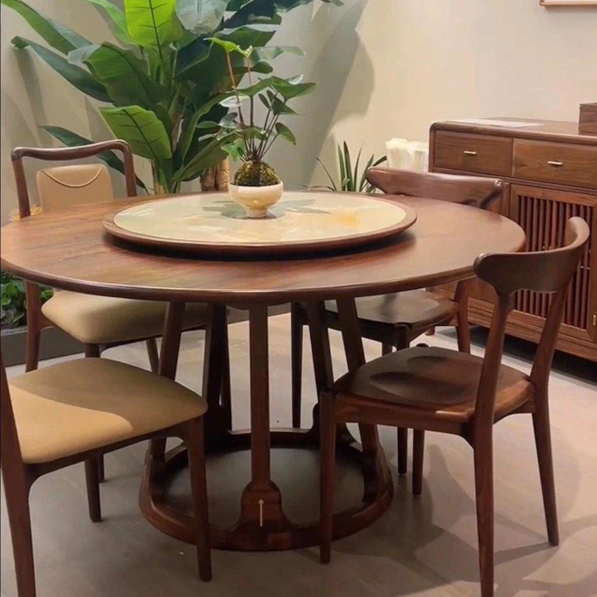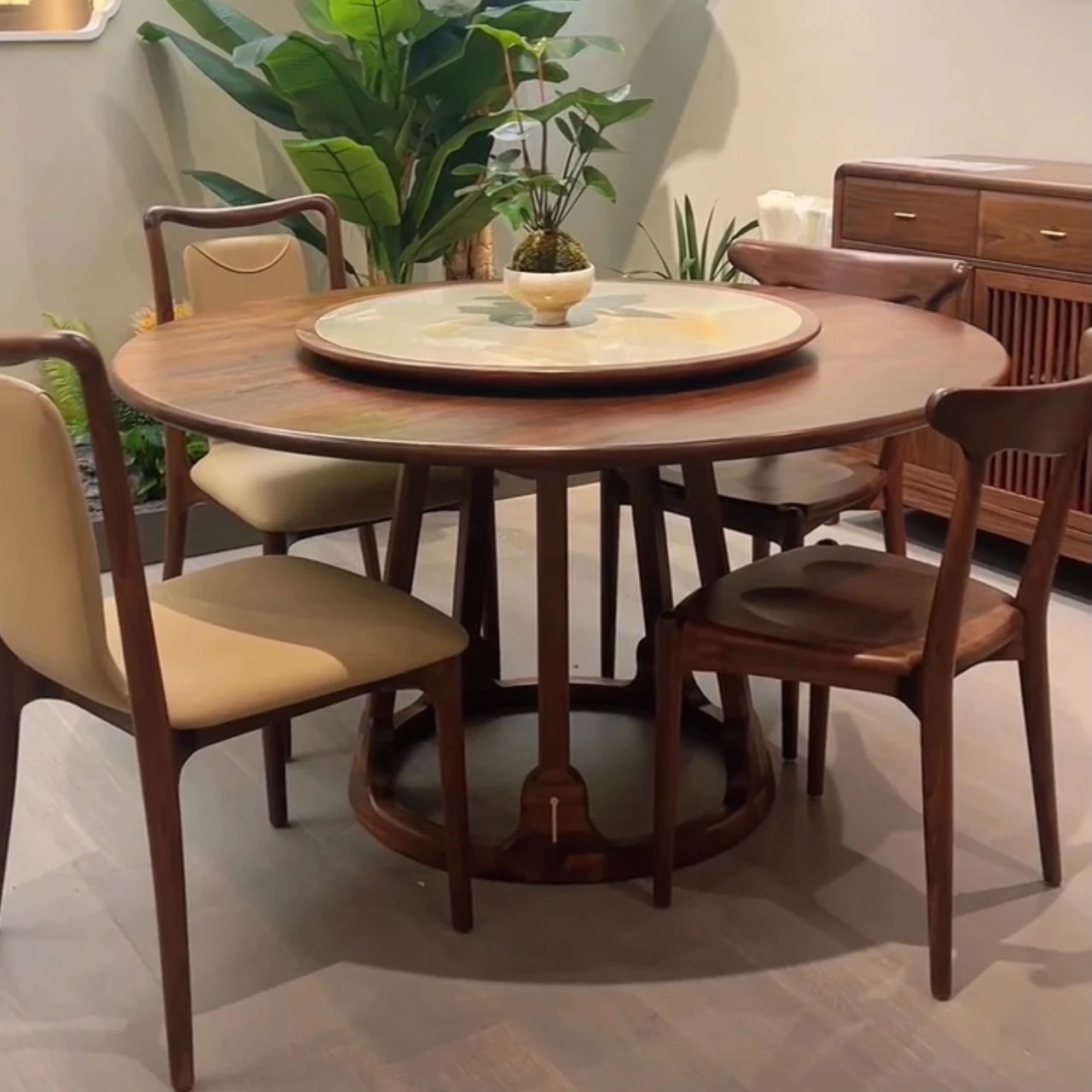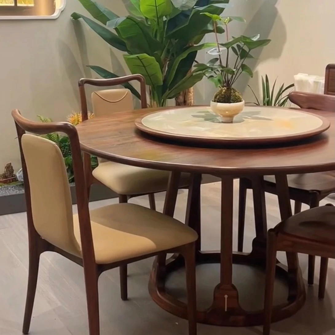 2025年新作!ヴィンテージスタイルのブラックウォールナット製丸テーブル - 家庭用ダイニングテーブル、食事をもっと楽しくする洗練されたデザイン!