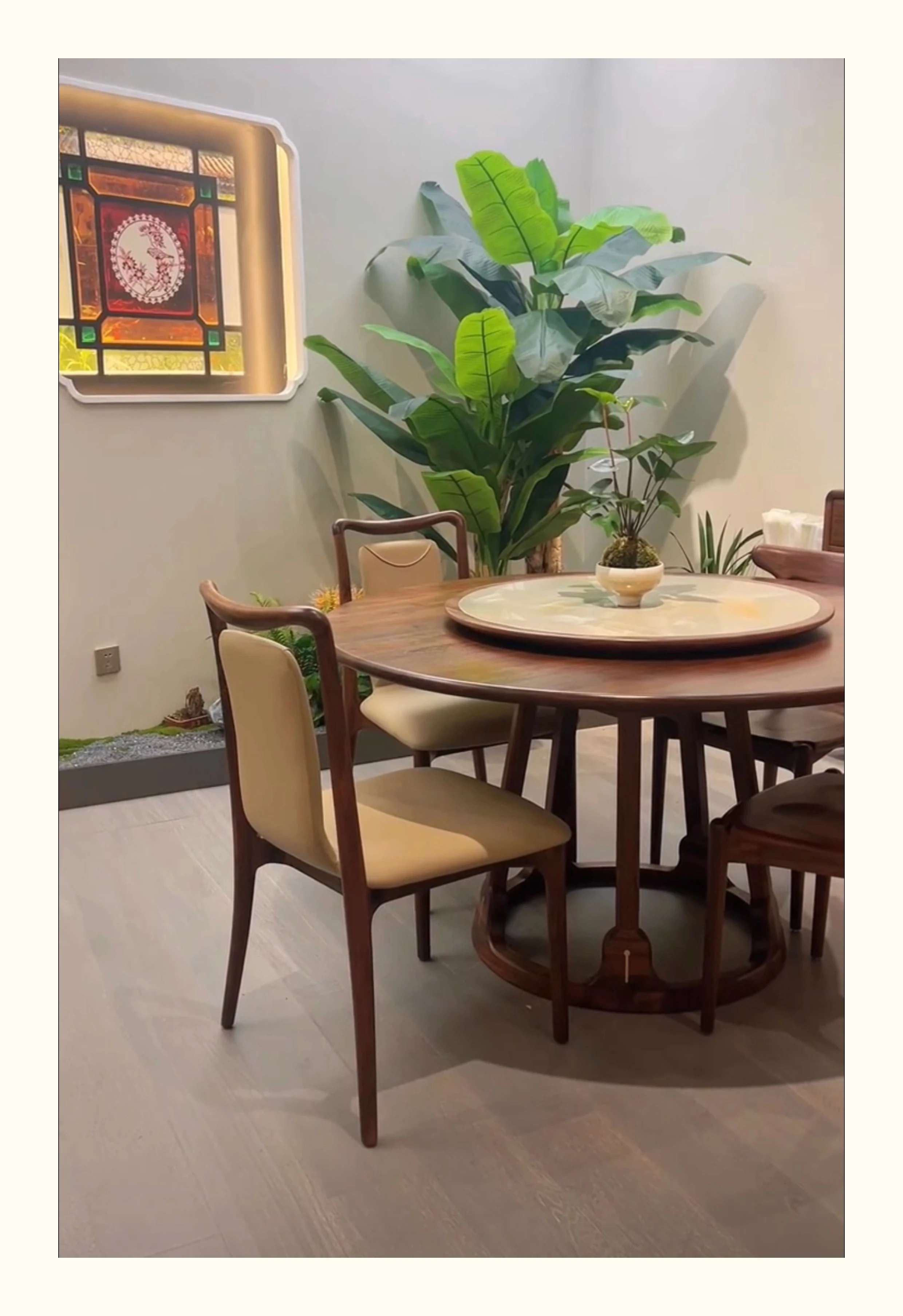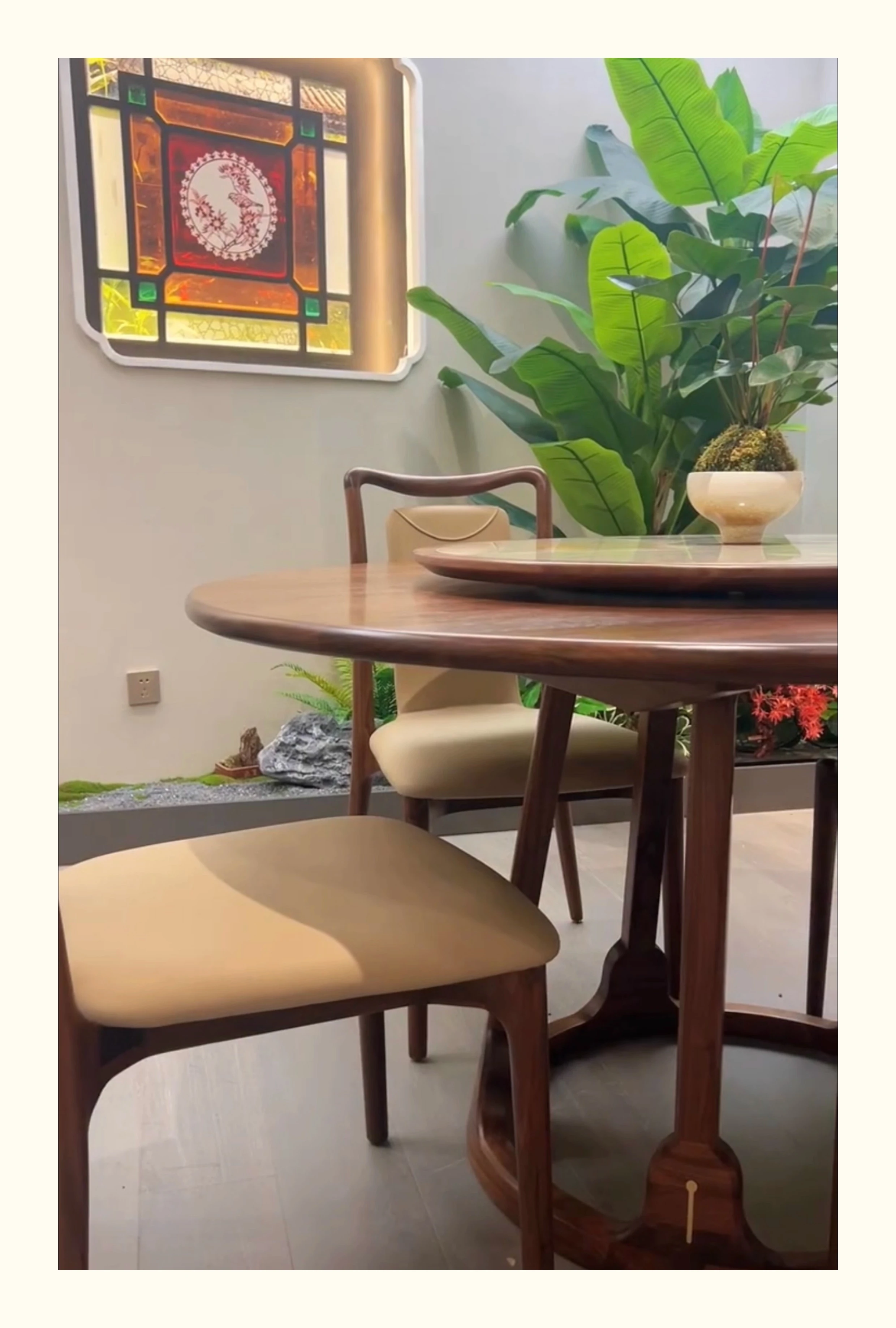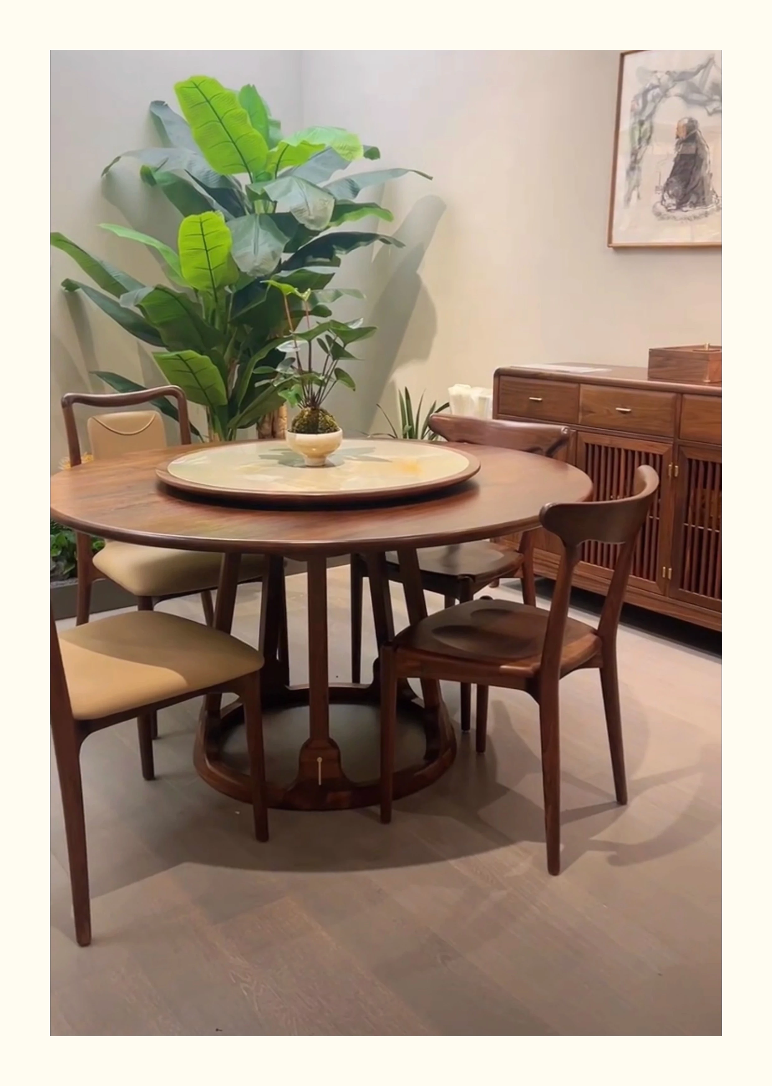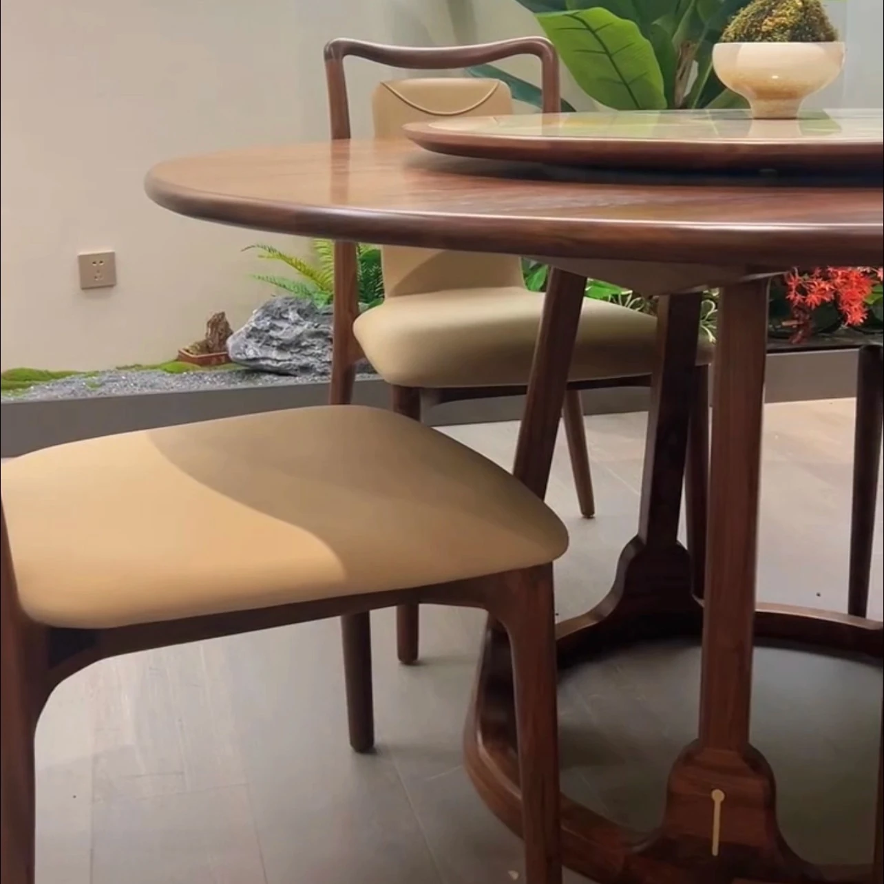 2025年新作!ヴィンテージスタイルのブラックウォールナット製丸テーブル - 家庭用ダイニングテーブル、食事をもっと楽しくする洗練されたデザイン!