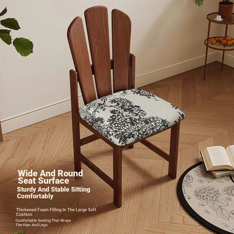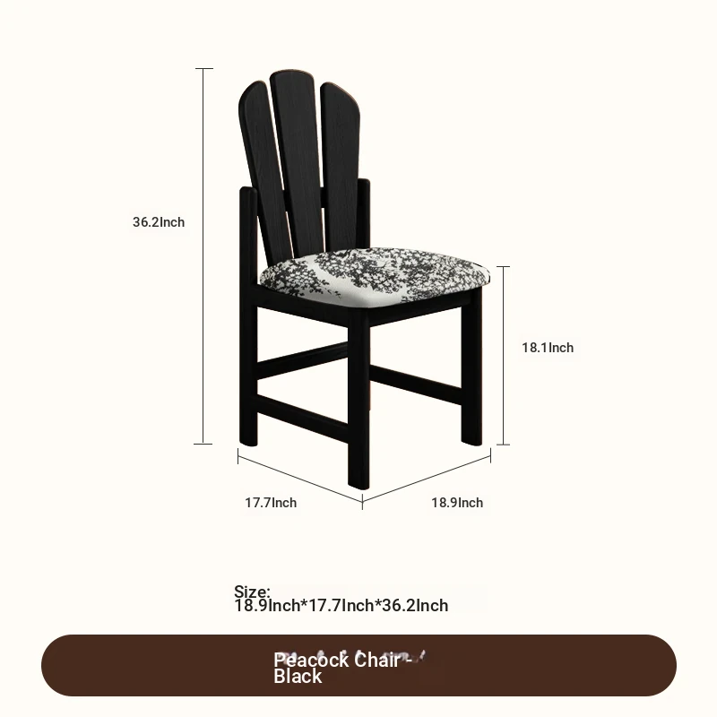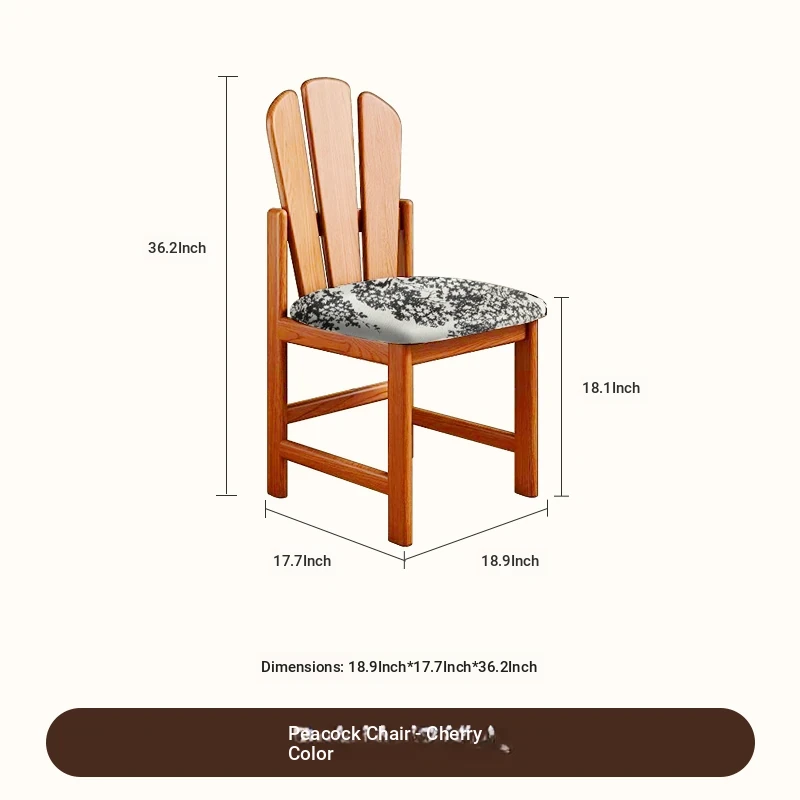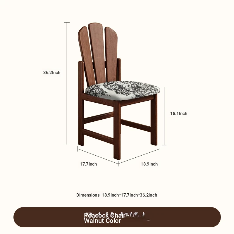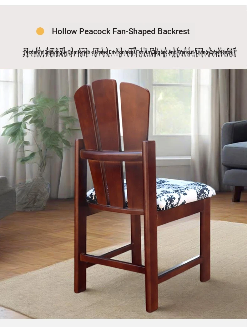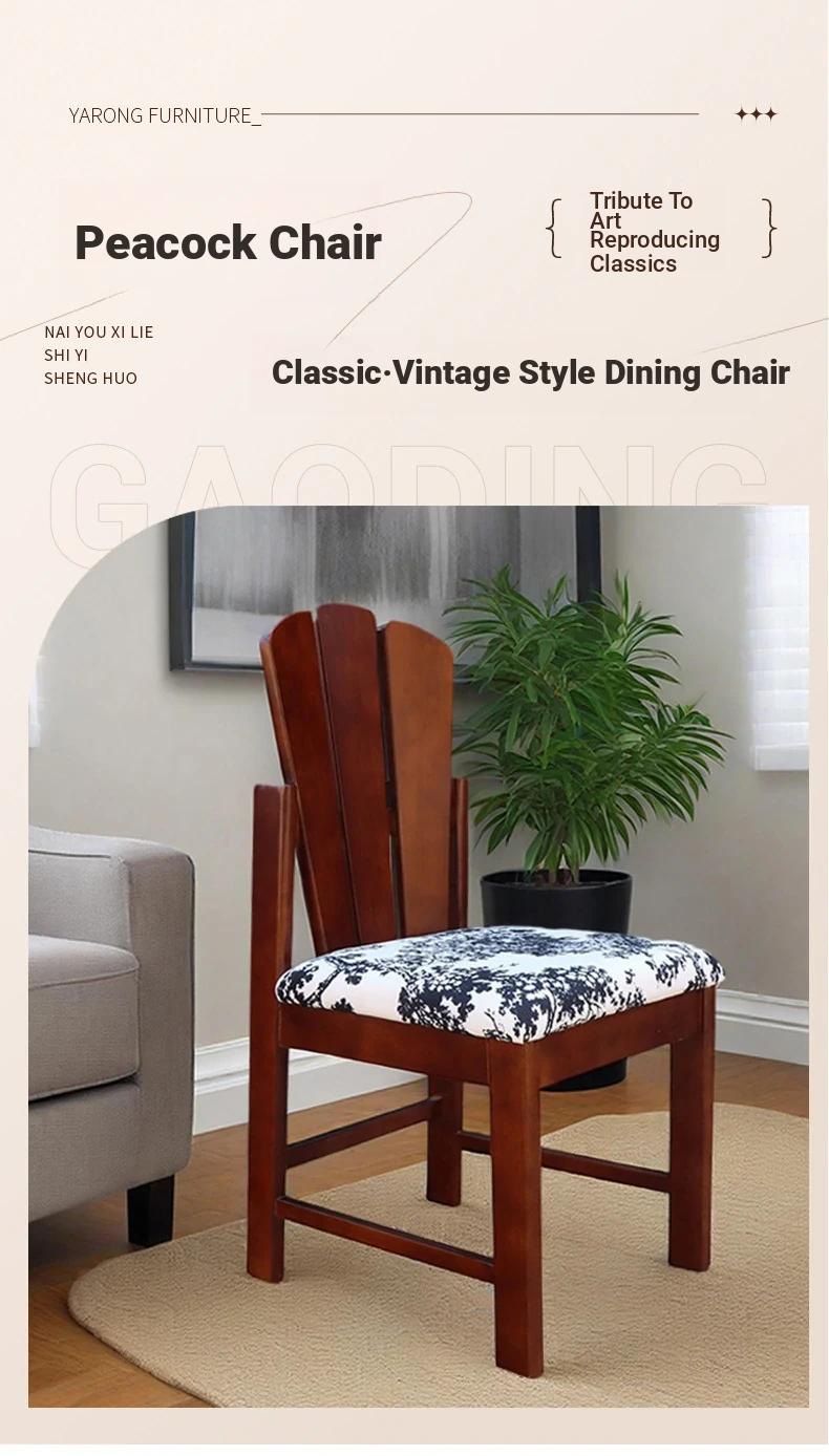 Vintage Solid Wood Peacock Chair - French Style Rubber Wood Vanity and Makeup Chair, Upholstered Dining Chair for Small Spaces, Elegant Backrest Design for Dining Room