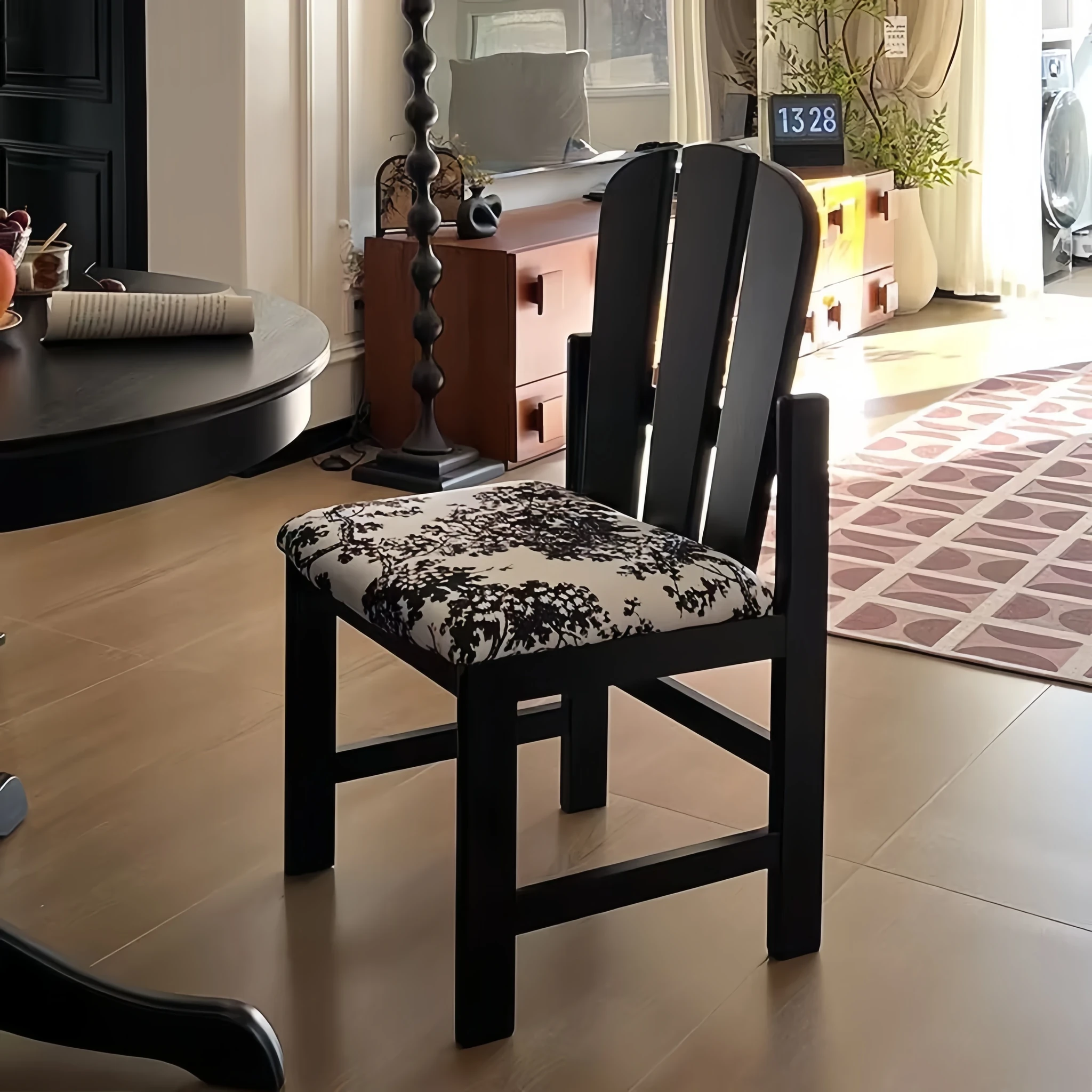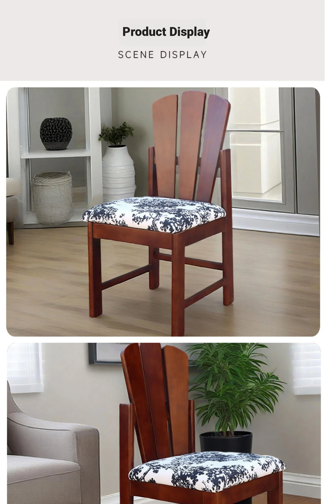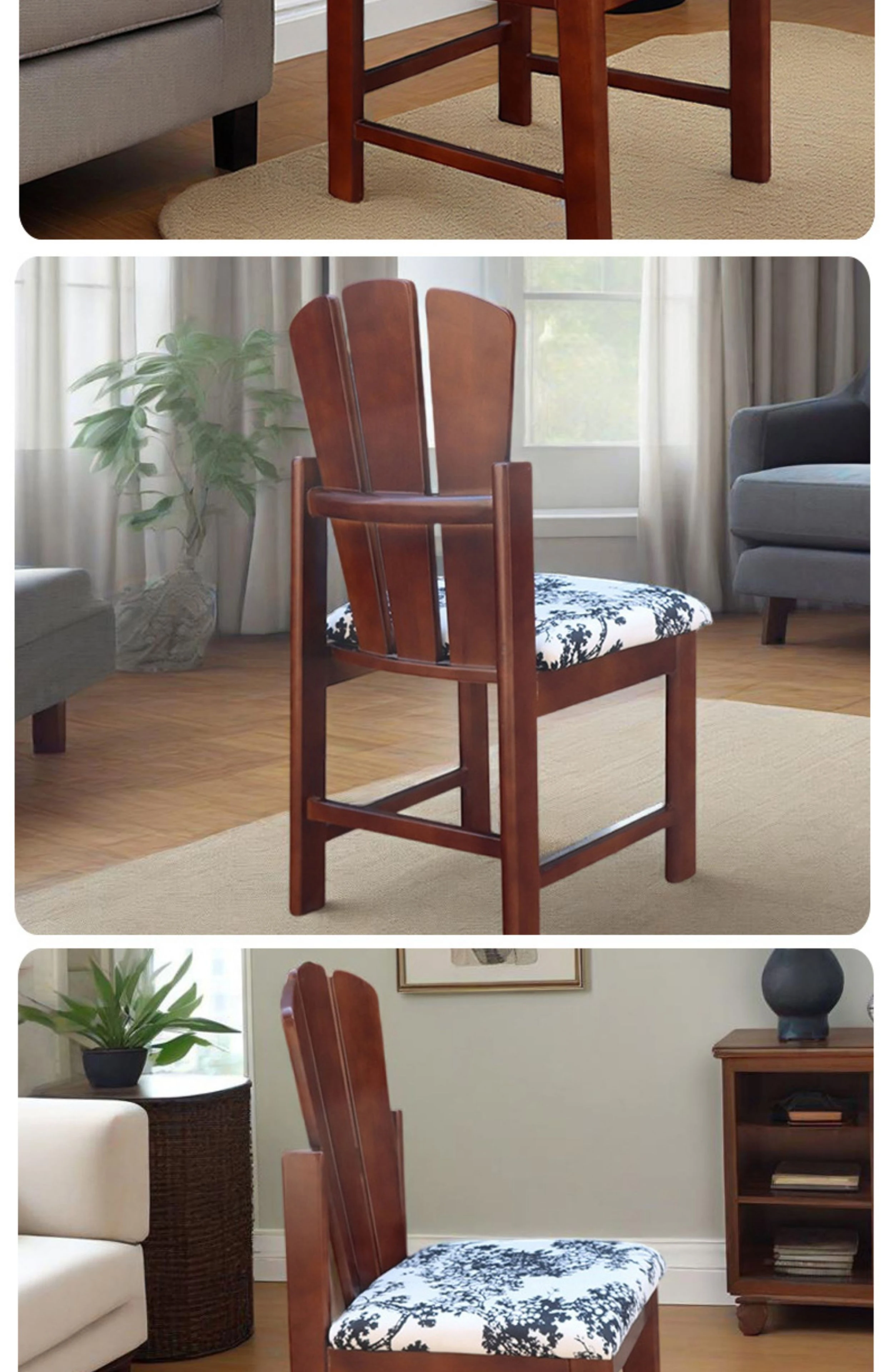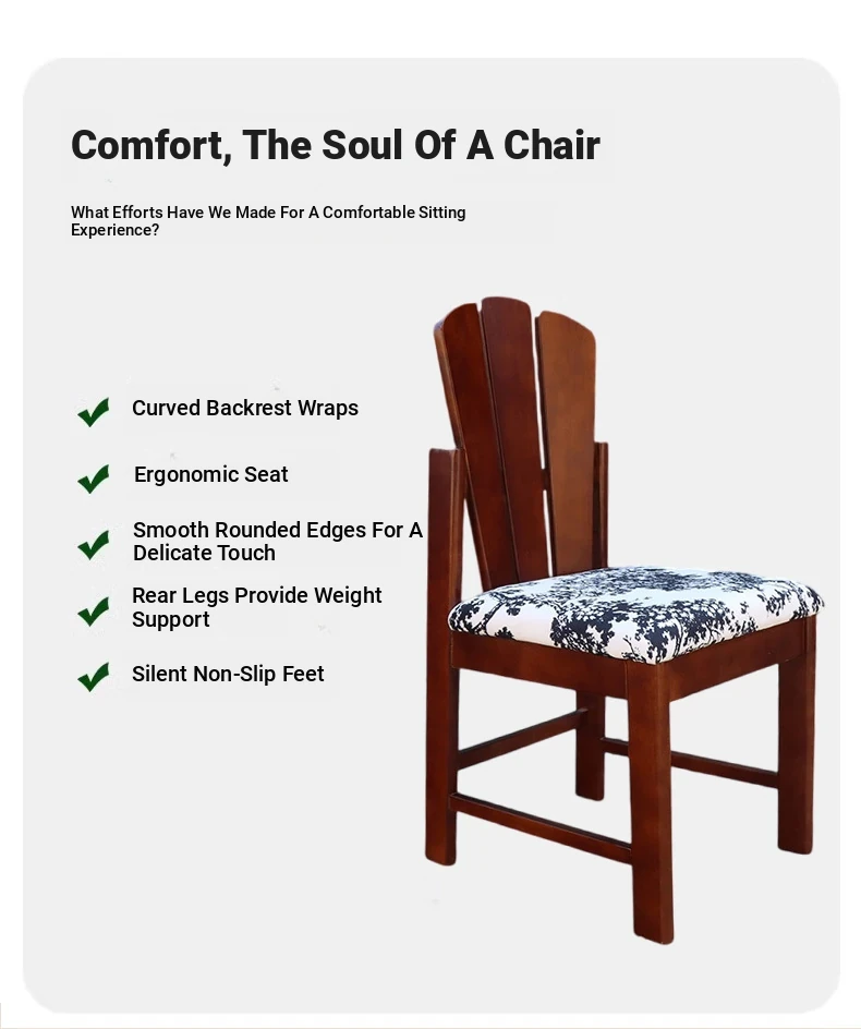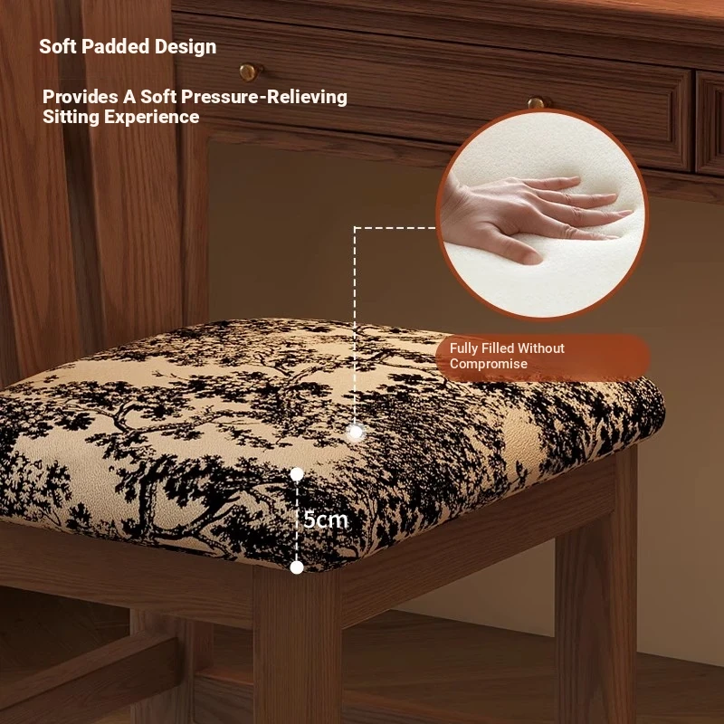 Vintage Solid Wood Peacock Chair - French Style Rubber Wood Vanity and Makeup Chair, Upholstered Dining Chair for Small Spaces, Elegant Backrest Design for Dining Room