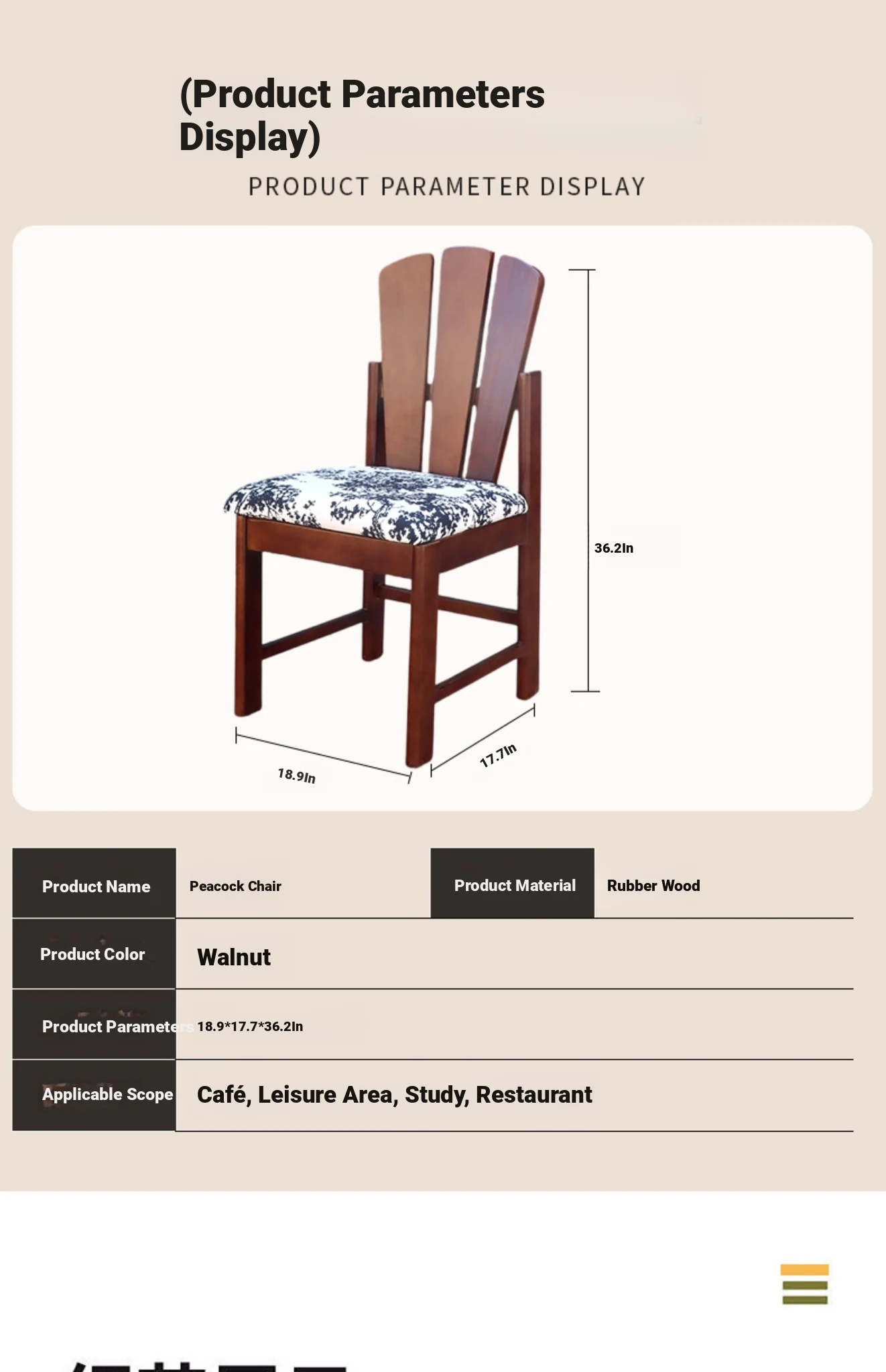Peacock Chair [Walnut Color Frame]-Bayberry Cashmere [Single Pack] Import Rubber Wood [Length 45 Width 48 Height 92]]