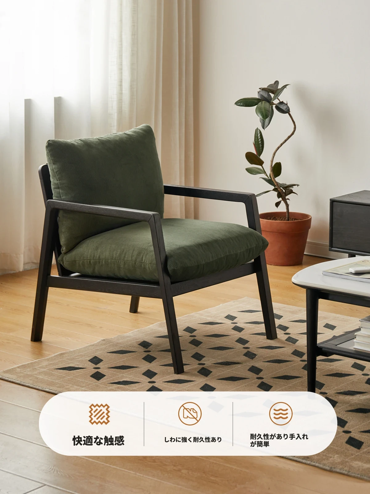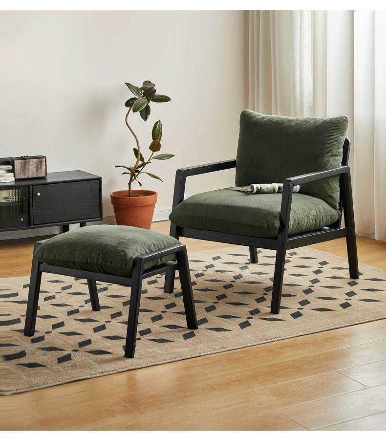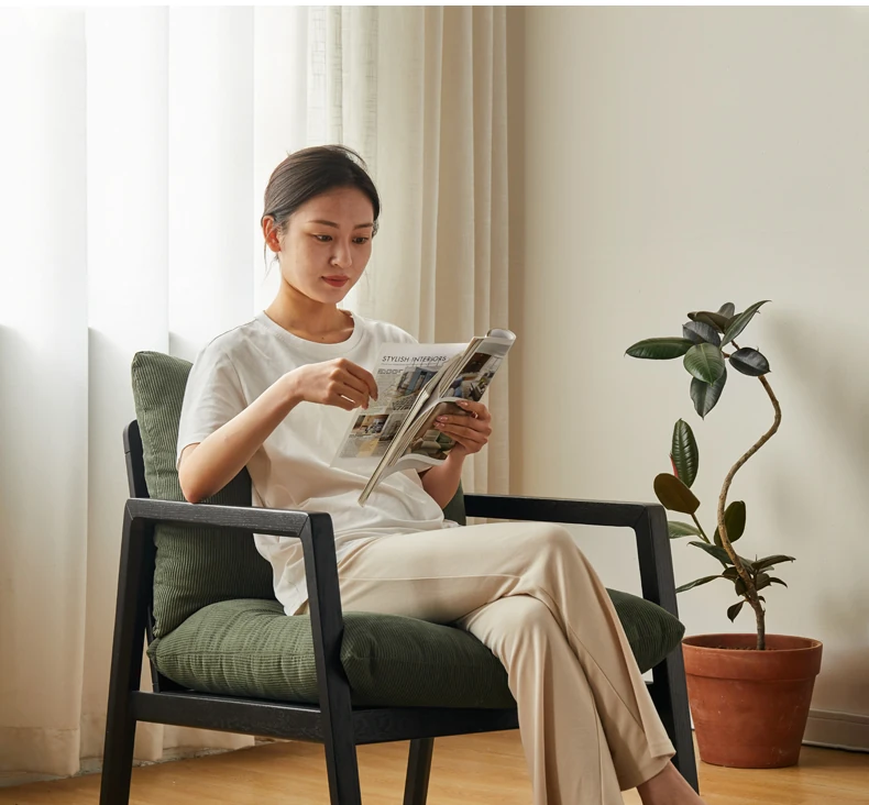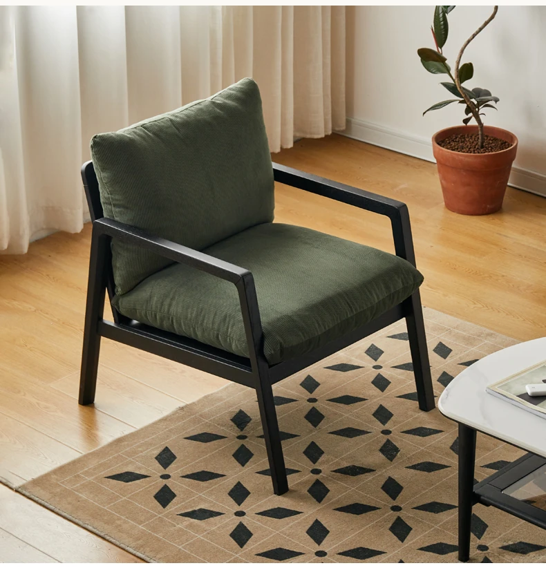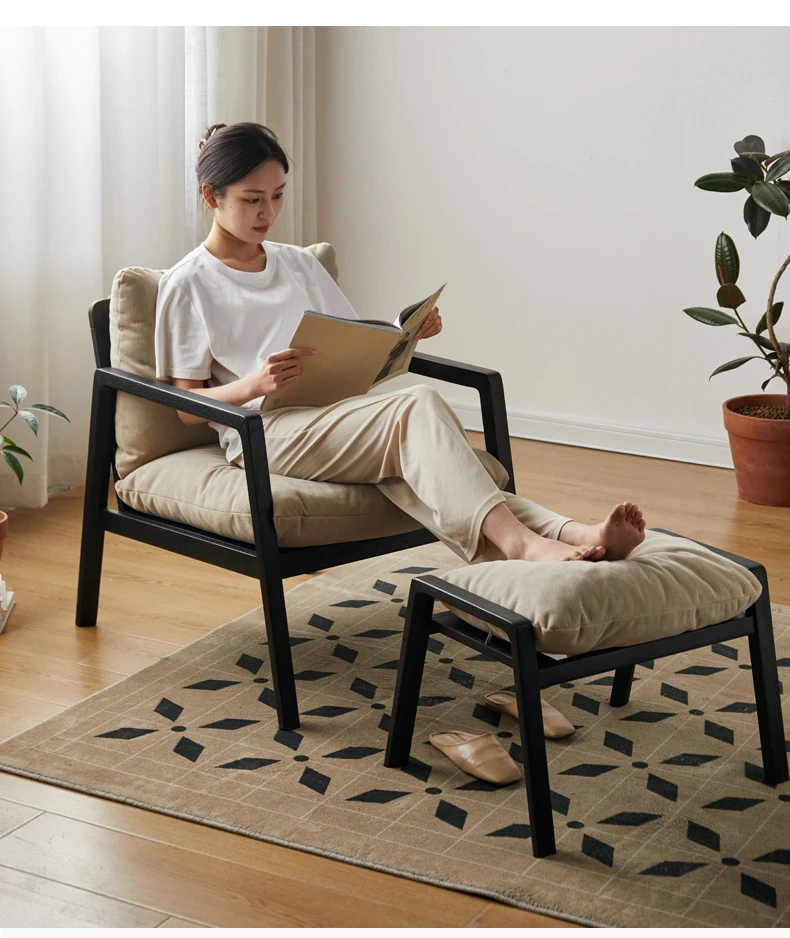 ヴィシャ実木ソファチェア - アメリカンライトラグジュアリーなリビング用シンプルオークのブラックバルコニーリクライニングチェア、贅沢な快適さをお手軽に!
