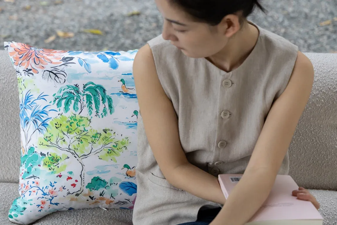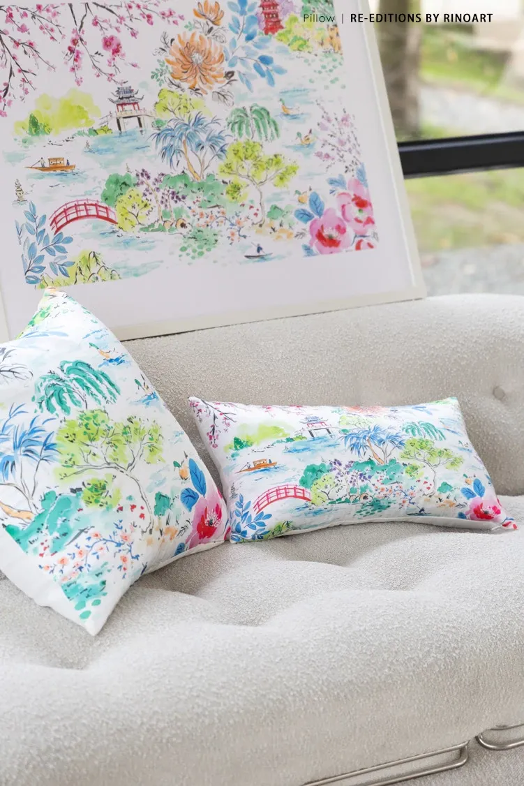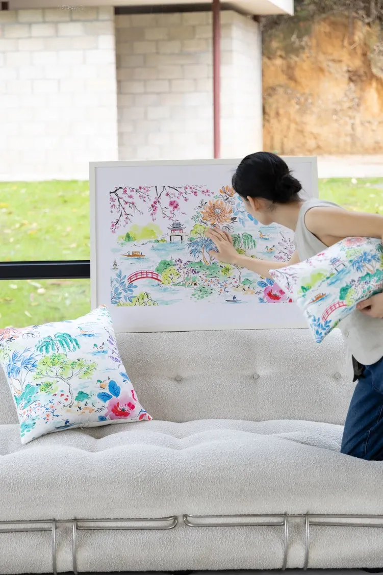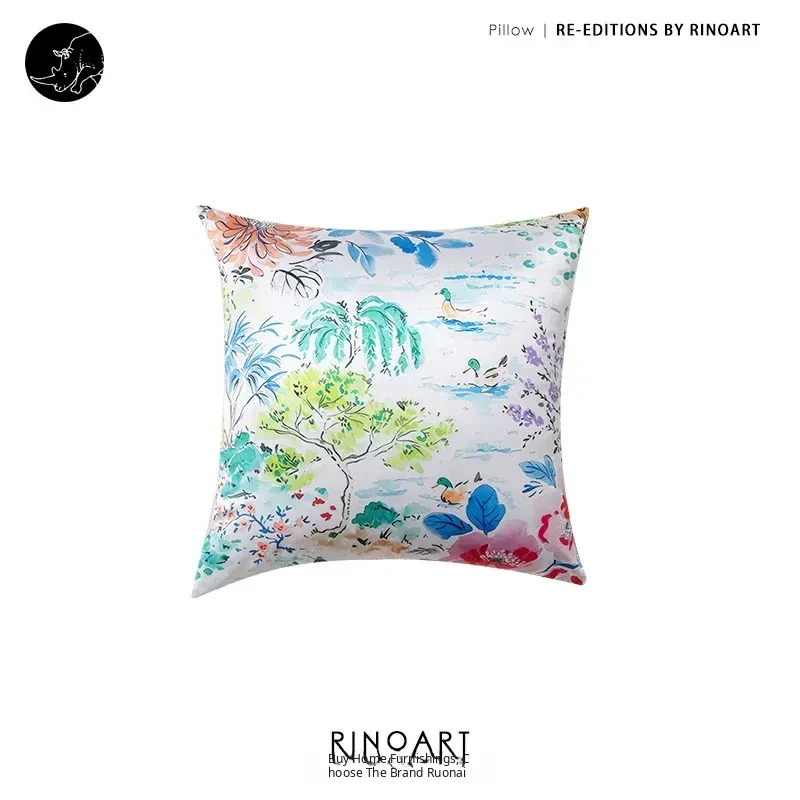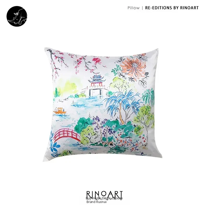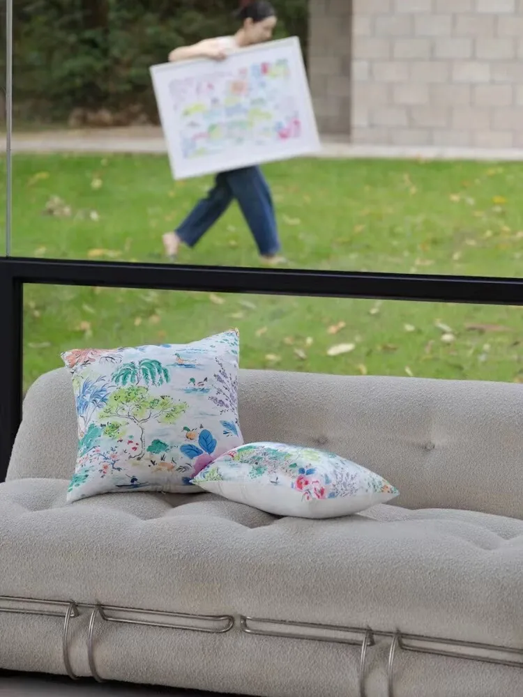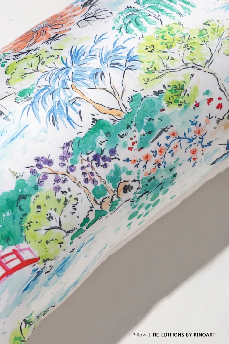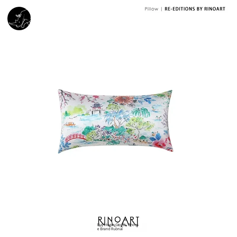 Yuna Embroidered Film Pillow / "Spring in Jiangnan" Silk-Satin Lumbar Support Pillow - Luxurious Comfort for Your Home Decor