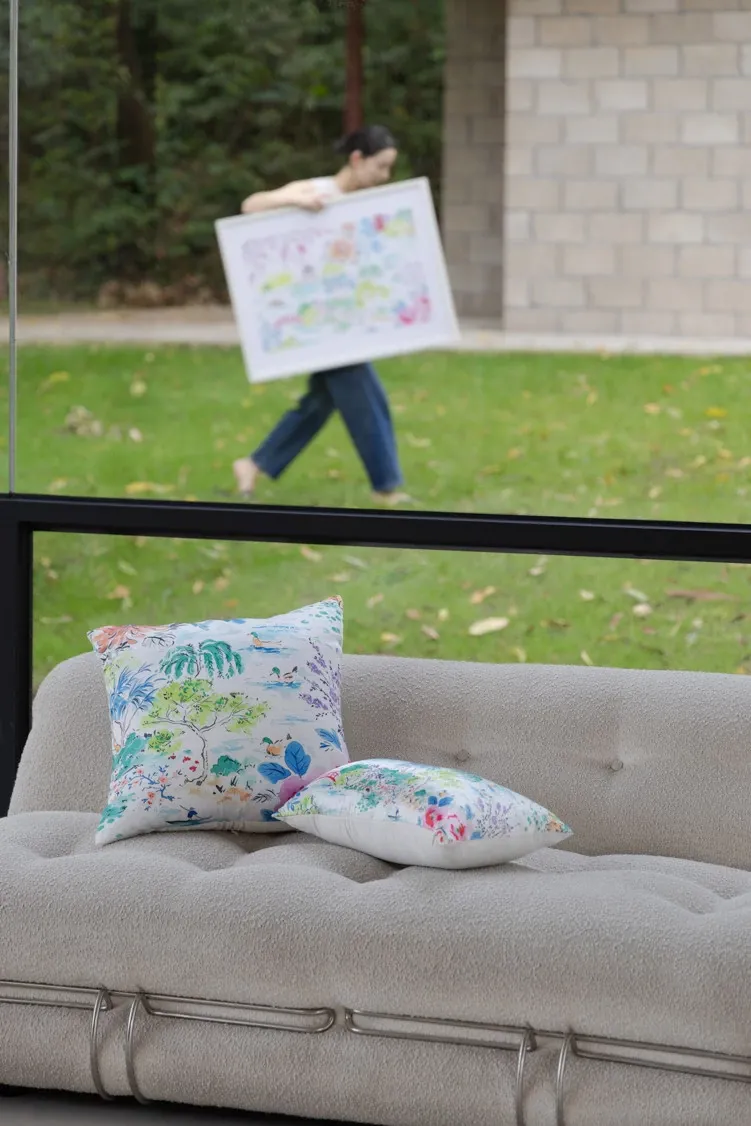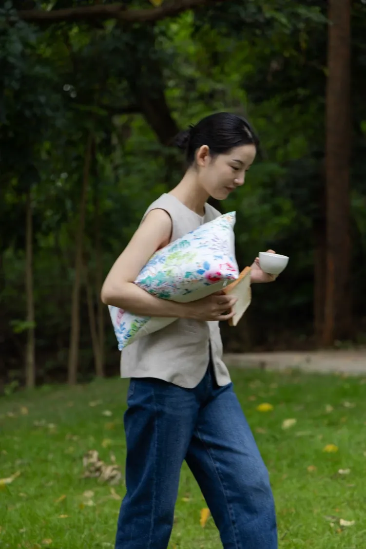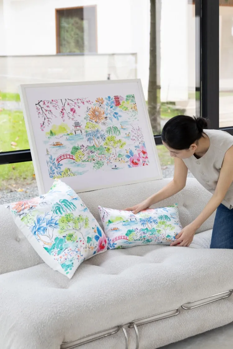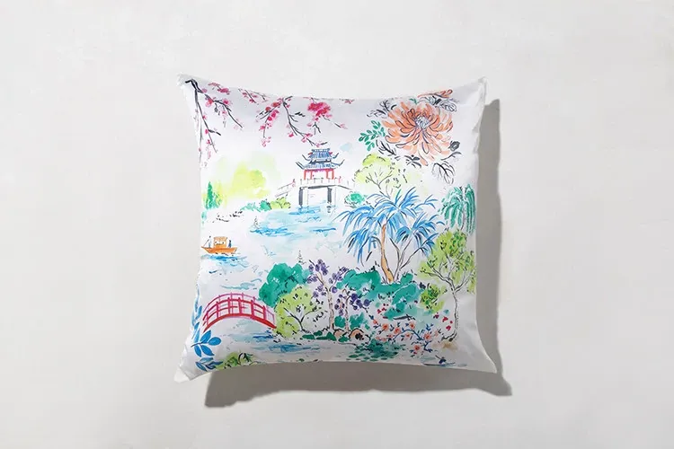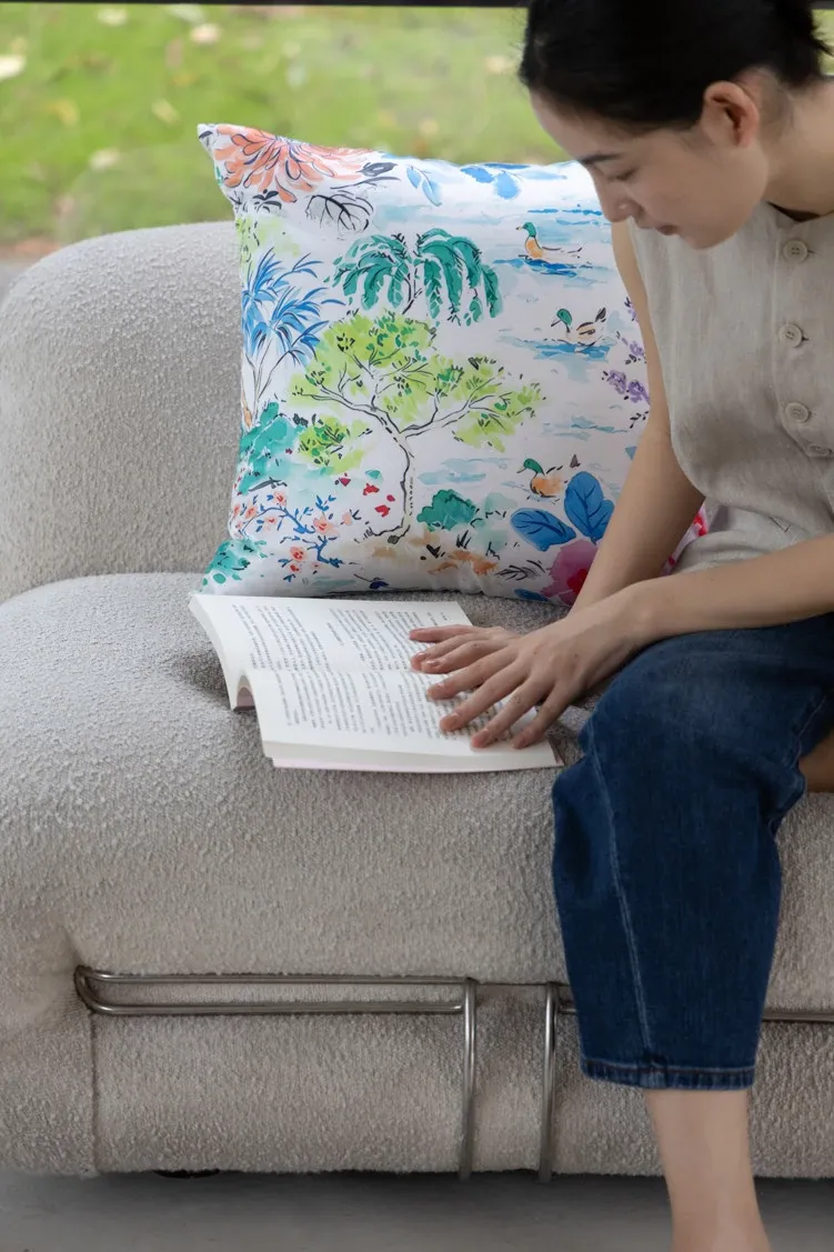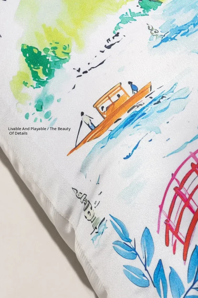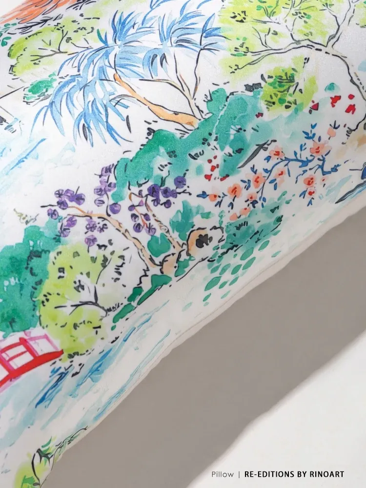 Yuna Embroidered Film Pillow / "Spring in Jiangnan" Silk-Satin Lumbar Support Pillow - Luxurious Comfort for Your Home Decor