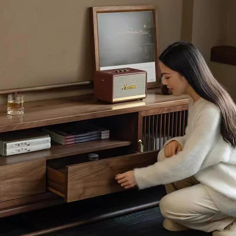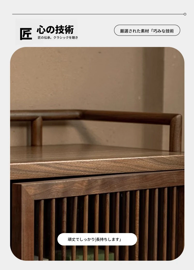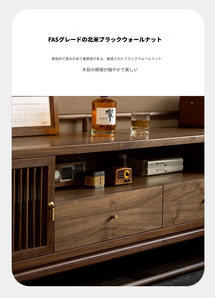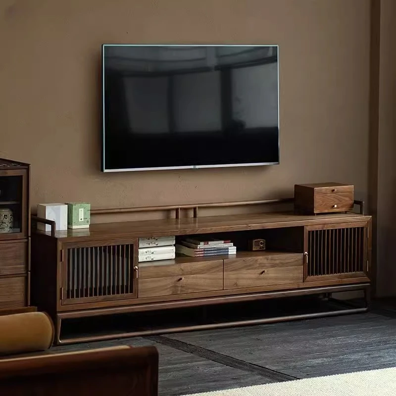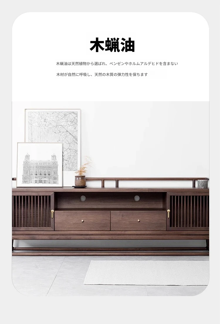 新中式デザインの無垢材テレビボードとコーヒーテーブルのセット - 禅の雰囲気を醸し出すリビングルーム用収納キャビネット。デザイナーが手掛けた、機能性と美しさを兼ね備えた逸品。