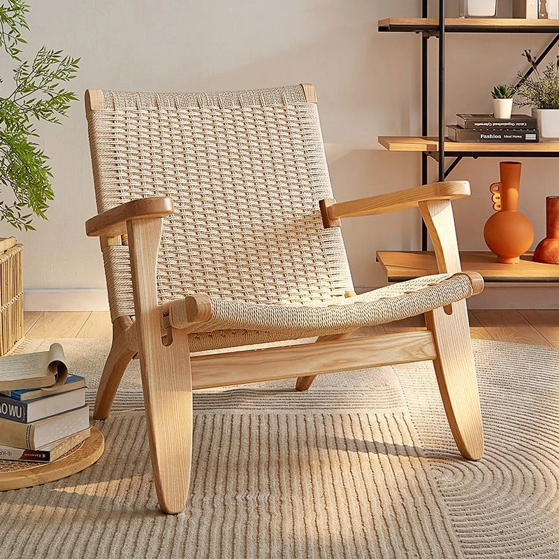 北欧風シングルソファー|天然木とラタン編みの贅沢なデザイン|バルコニーや小型住宅に最適!侘び寂びの美しさを楽しむリラックス空間を演出する民宿スタイルのソファチェア!