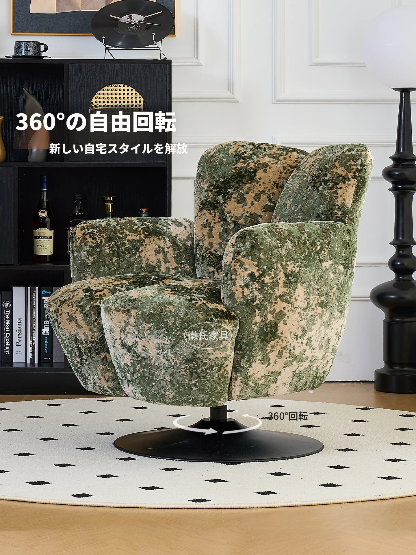 回転式一人掛けソファチェア - リラックスできるデザイン、バルコニーやリビングに最適!シンプルで洗練された軽奢スタイルが、あなたの空間をおしゃれに演出します。
