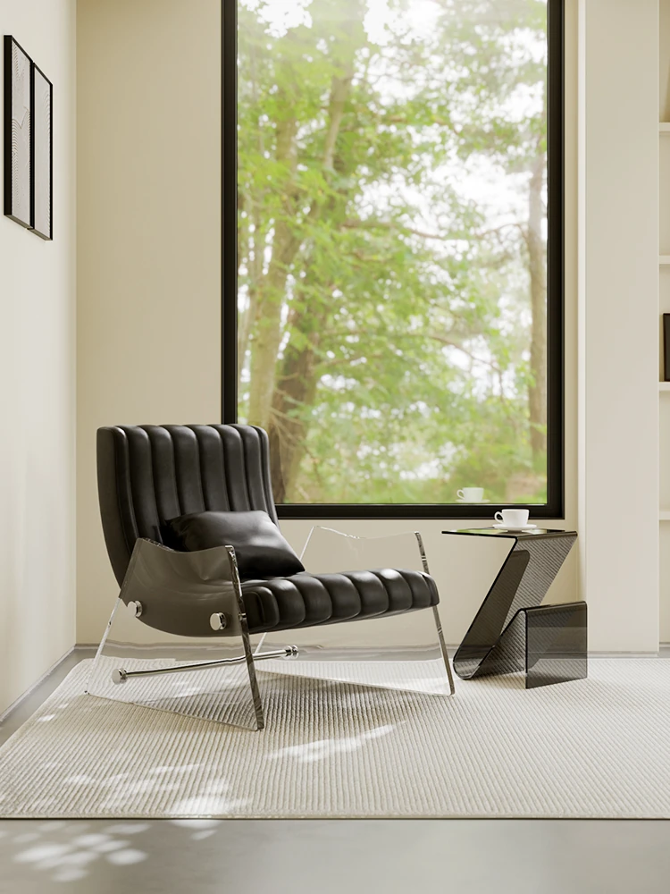 浮遊する透明アクリルの高級ワンシートソファ - 寝室やリビングに最適なデザイナー製レザー調リクライニングチェア。スタイリッシュで快適、あなたの空間を格上げする一品です!