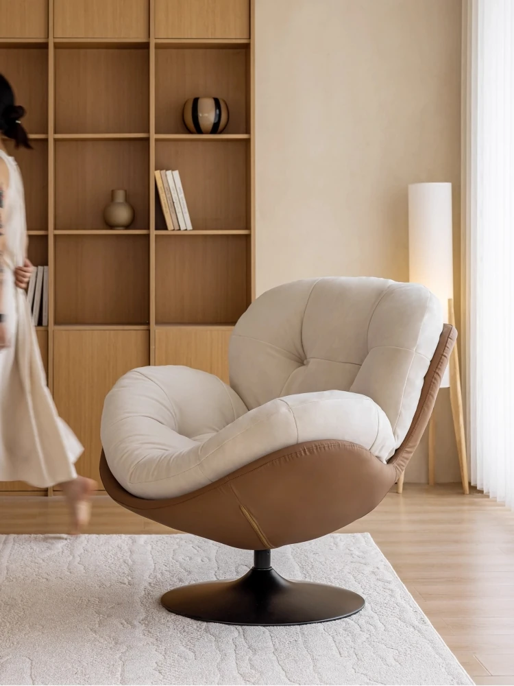 クリーム色の回転ソファチェア - 家庭用リラックスチェア、リビングルームに最適!昼寝にもぴったりな軽やかな一人用ソファ。おしゃれなバルコニーにも映える、贅沢なひとときをお楽しみください。