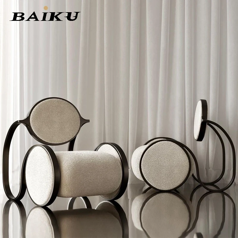 イタリアンラグジュアリー金属ソファチェア - 小型住宅に最適なコットンリネンベルベットのリラックスチェア。デザイナー仕様のソフトパッケージ、優雅なデザインで、くつろぎのひとときを提供します。