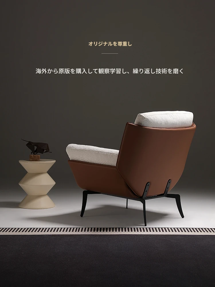 北欧モダン軽奢デザインの一人掛けソファ - シンプルで洗練されたホテルやカフェ、ショールームの接客スペースに最適!リラックスできる談話椅子で、居心地の良いひとときを演出します。