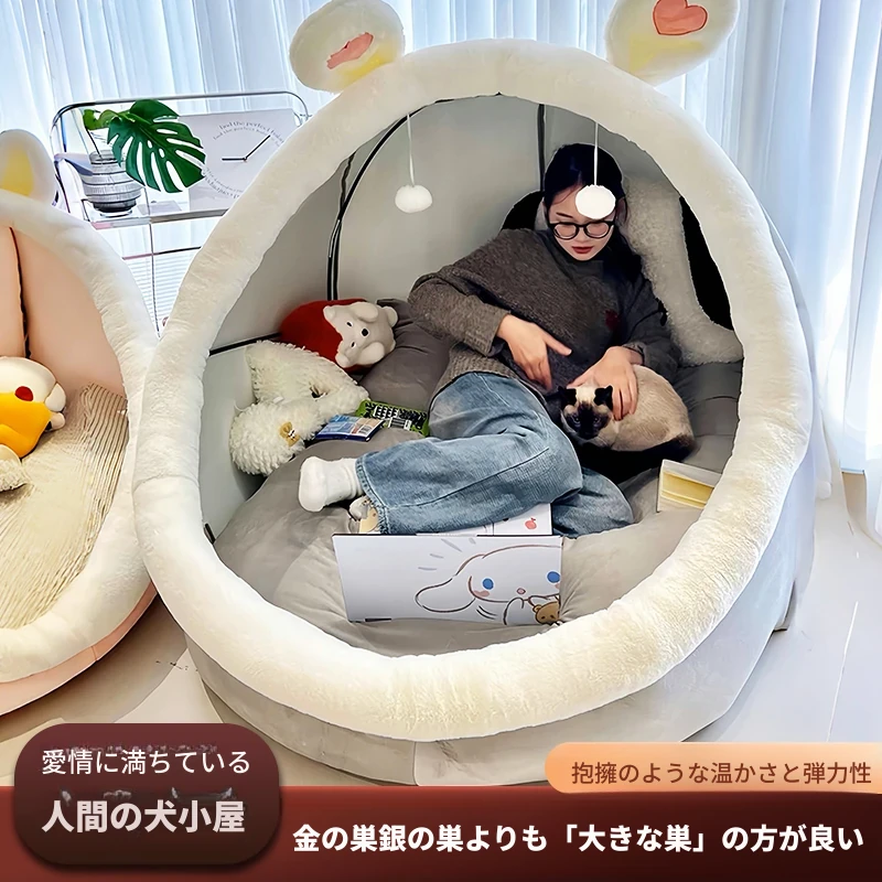 人間用犬小屋!快適でかわいい巨大ソファー!リラックスできる寝そべりスペース付き、大型猫用ハウスやおしゃれなカートンツリーホールデザインで、インスタ映え間違いなし!