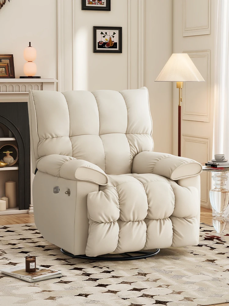 リクライニング機能付き!一人用多機能ソファ - おしゃれで快適な電動回転式リビング用リラックスチェア。座っても寝てもOK!あなたのくつろぎ空間をワンランクアップ!