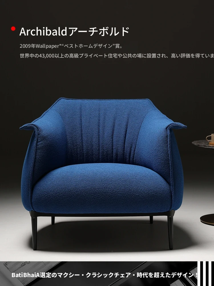 アーチボルドのリラックス一人掛けソファチェア - デザイナーズスタイルのブルー、イタリアンラグジュアリーで洗練されたリビング空間を演出します!
