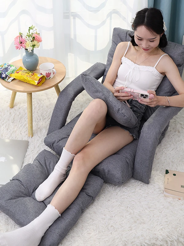 学生寮にぴったり!背もたれ付きリクライニングチェア、リラックスできるソファ。シングルサイズでお年寄りにも優しい設計。寝室や窓際、畳にも最適な万能アイテム!