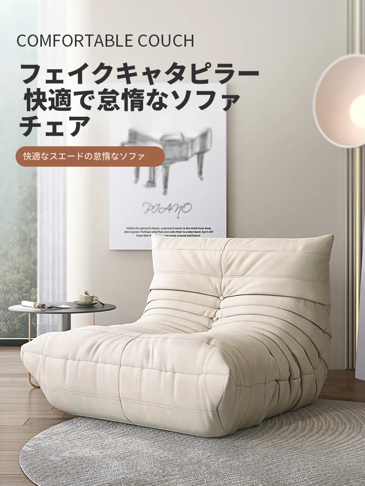 リラックスできる!寝転びながらくつろげる、毛虫デザインの一人用ソファ。寝室やバルコニー、リビングにぴったりの快適な休息セット。背もたれ付きで、あなたのくつろぎタイムをサポートします!