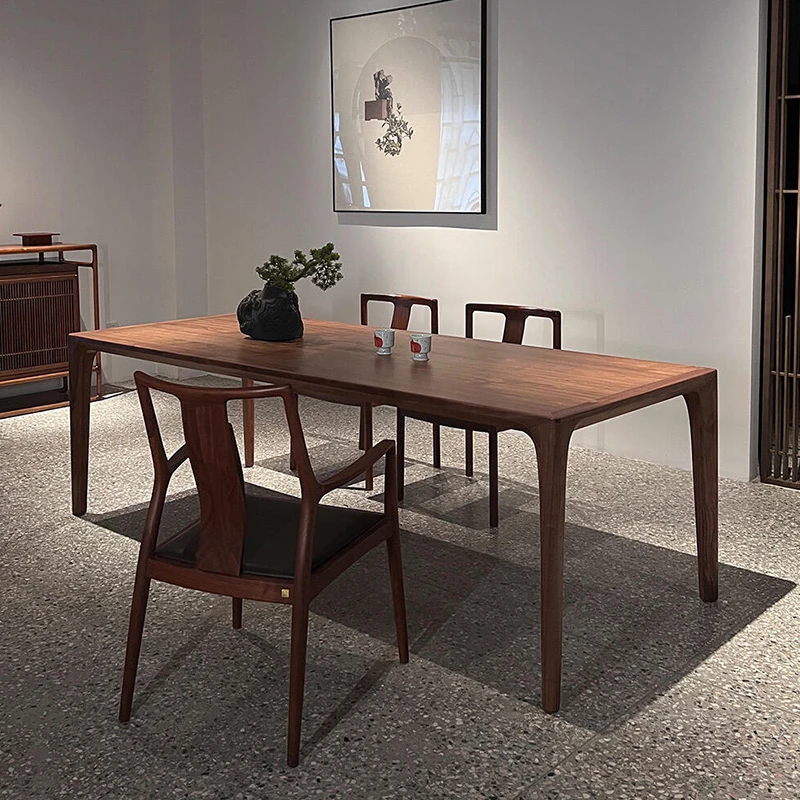 新中式2025新作!現代的シンプルさと軽やかなラグジュアリー感を兼ね備えた、ウォールナット製の高級ダイニングテーブル。家族や友人との特別なひとときを演出します。