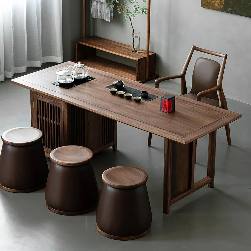 新中式デザインのブラックウォールナット製の茶卓 - モダンでシンプルな実木製、禅の雰囲気を醸し出す高級茶室用ティーテーブル。リラックスしたひとときをお届けします!