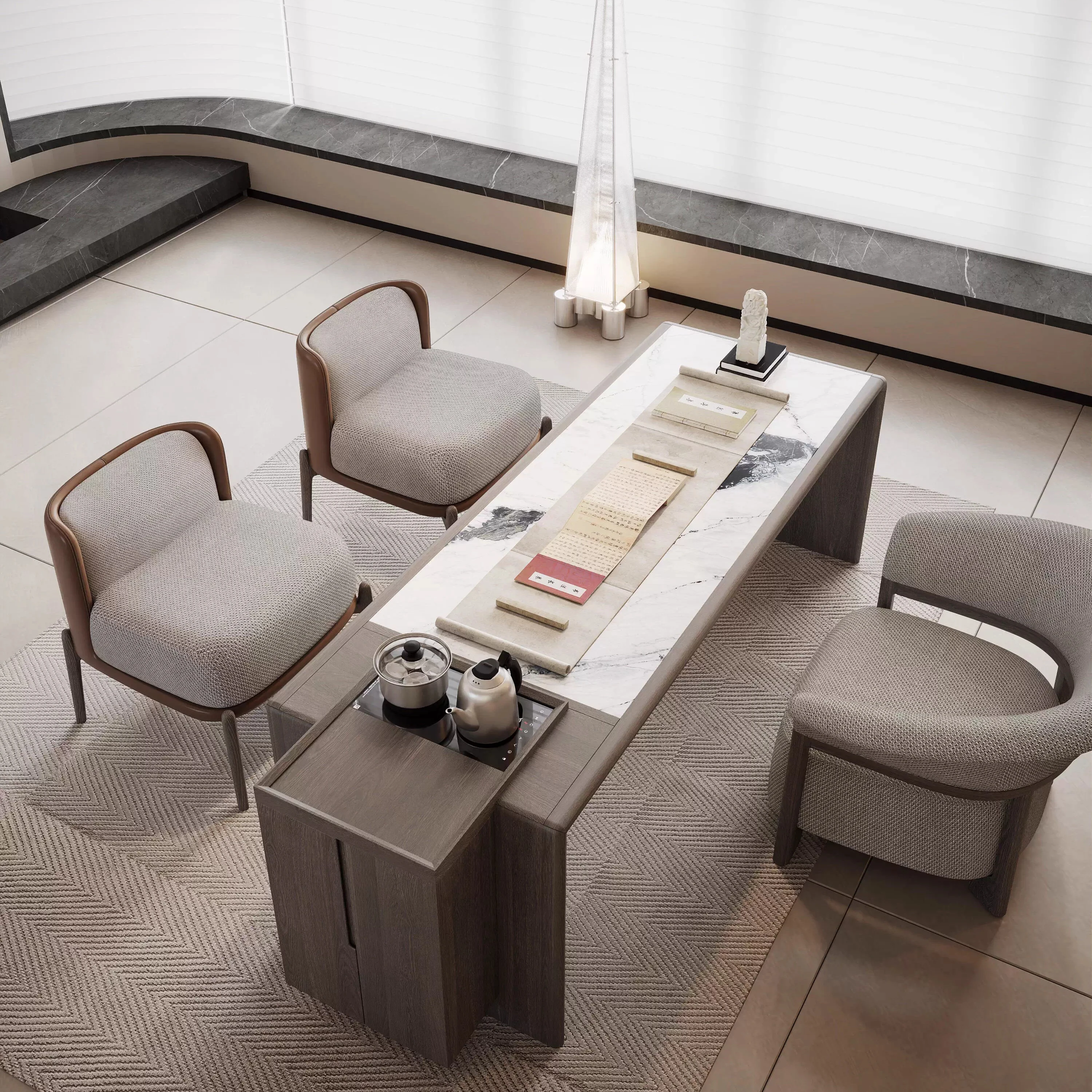2025年新款!現代シンプルな胡桃木製ティーテーブル - おしゃれなリビングやオフィスにぴったりの新中式デザイン。高品質な無垢材使用で、心地よいお茶の時間を演出します。