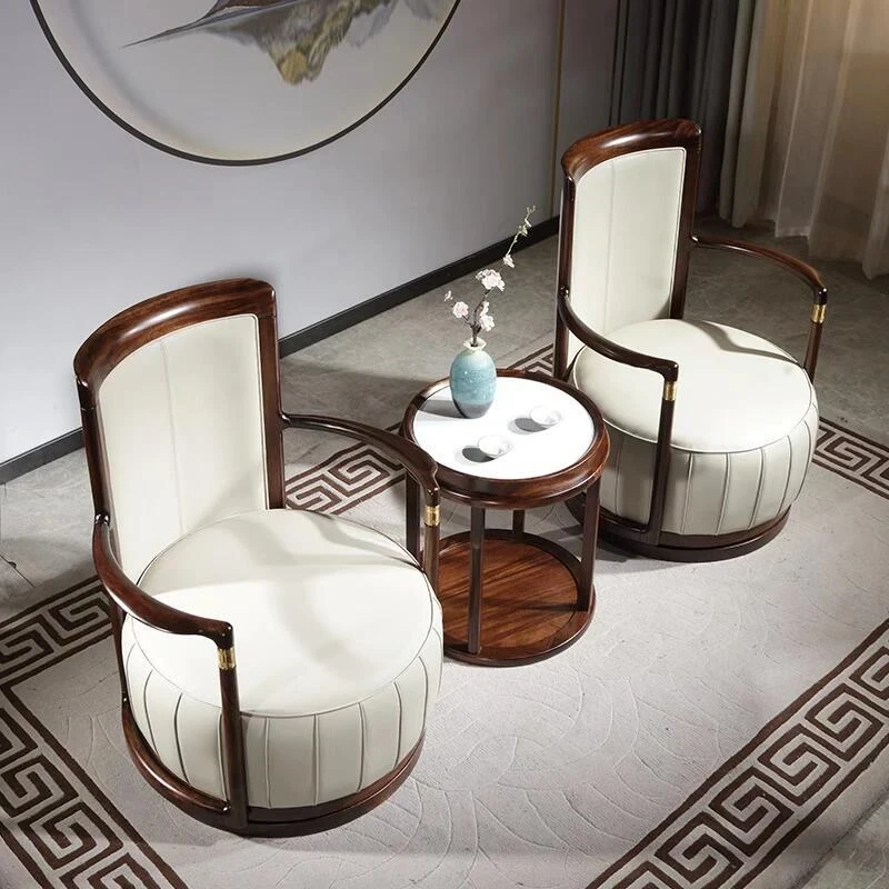 新中式スタイルの一人用ソファ椅子|無垢材使用|美容院や商談に最適|ウォールナット製|バルコニーやリビングにぴったりなリラックスチェア!