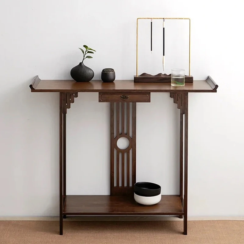 新中式ウォールナットの玄関テーブル - シンプルでエレガントな実木製、玄関や廊下に最適な禅の雰囲気を演出。あなたの家に洗練された印象を与える必需品!