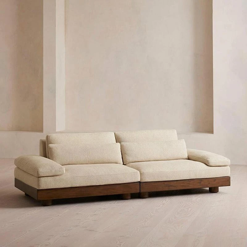 イタリアンミニマリズムのリビングルーム用、天然木とファブリックの3人掛けソファ。別荘やサロン、販売センターに最適な新中式スタイル。洗練されたデザインで、居心地の良い空間を演出します!