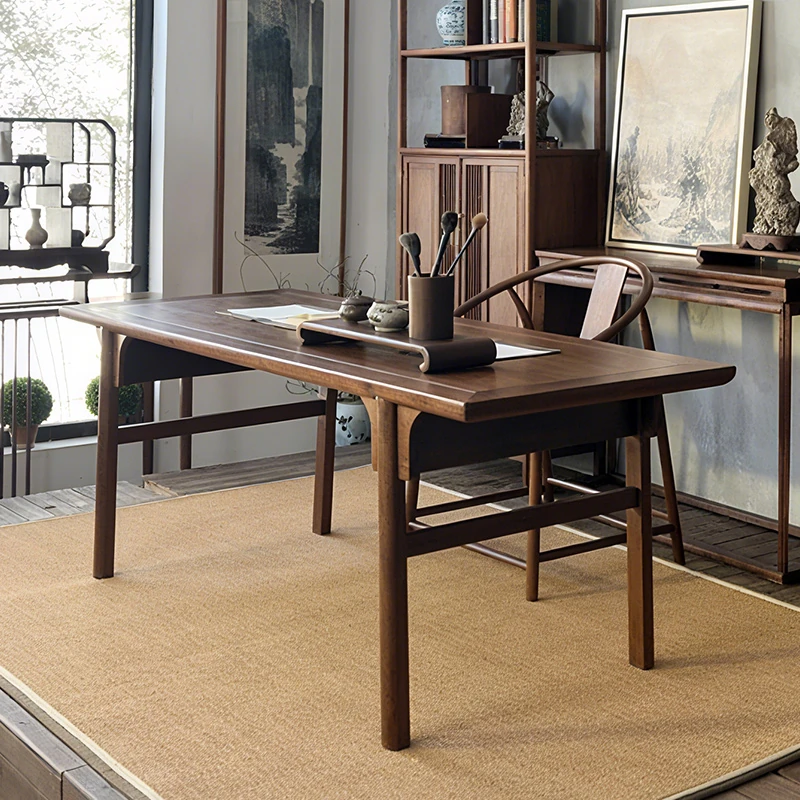 2025年新款!新中式胡桃木実木デスク - モダンでシンプルなデザイン、家用やリビングに最適な書き物机・コンピューターデスク。快適な作業空間を演出!