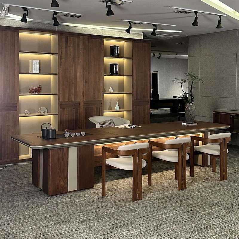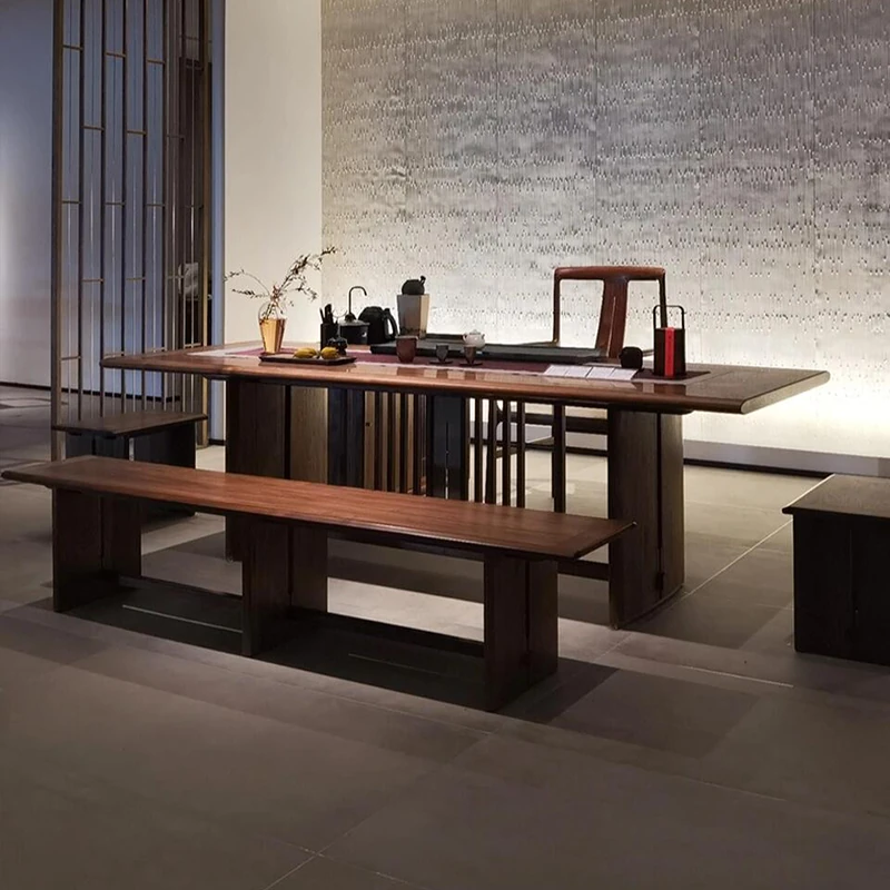 新中式デザインの高級胡桃木製書桌兼用茶桌 - 2025年最新モデル、シンプルで洗練されたリビングにぴったりの多機能茶台!