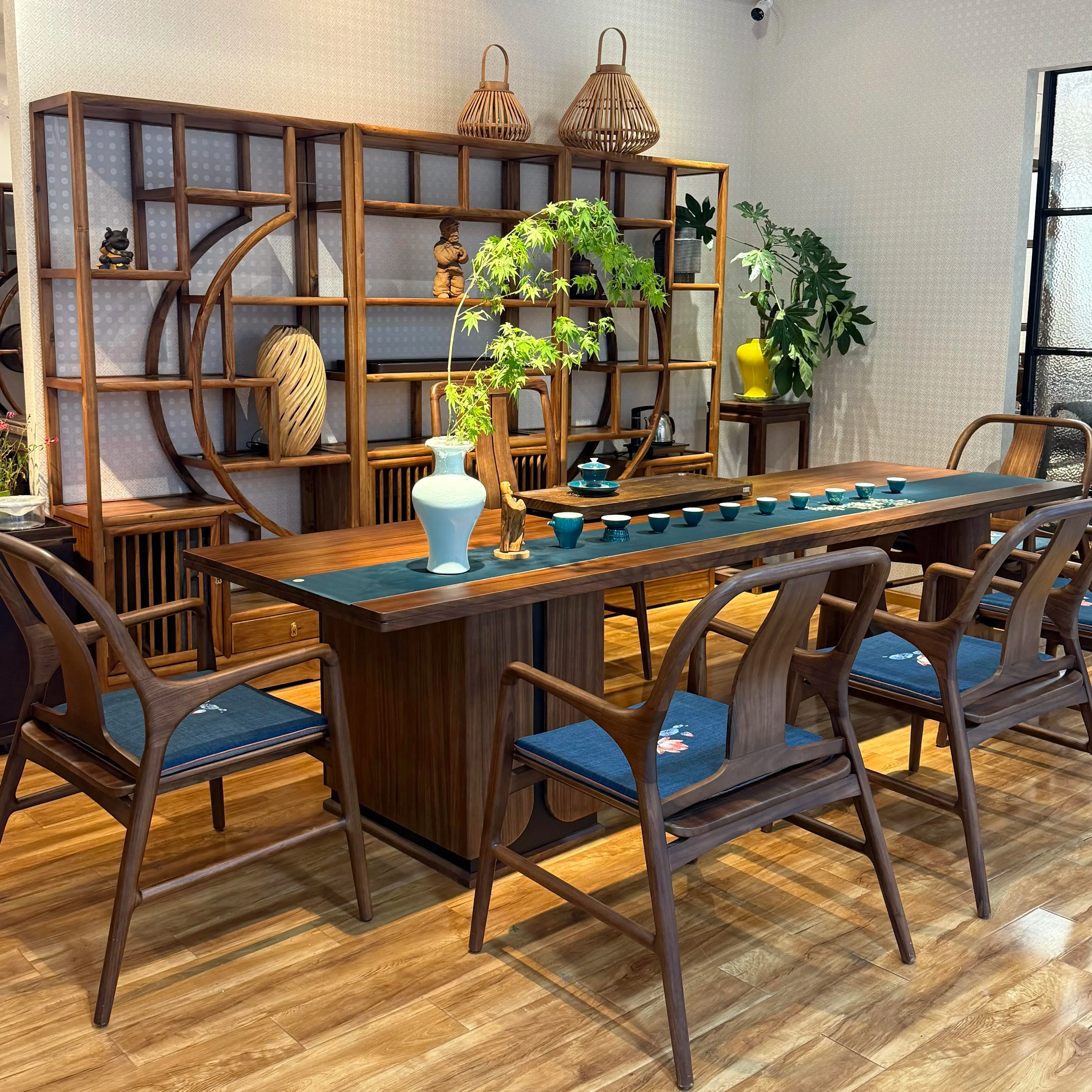 2025年新作!新中式スタイルの無垢材ティーテーブル - モダンでシンプルなデザイン、リビングルームにぴったりなクルミ材の茶台。お茶を楽しむための理想的な空間を演出します!
