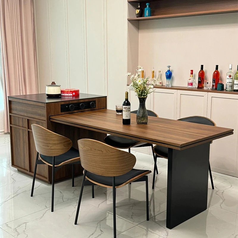 新中式デザインのアイランドダイニングテーブル2025年新作!モダンでシンプルな家庭用レストラン向け、天然木と岩板を使用したウォールナットのテーブル&チェアセット。上質な食事空間を演出します!