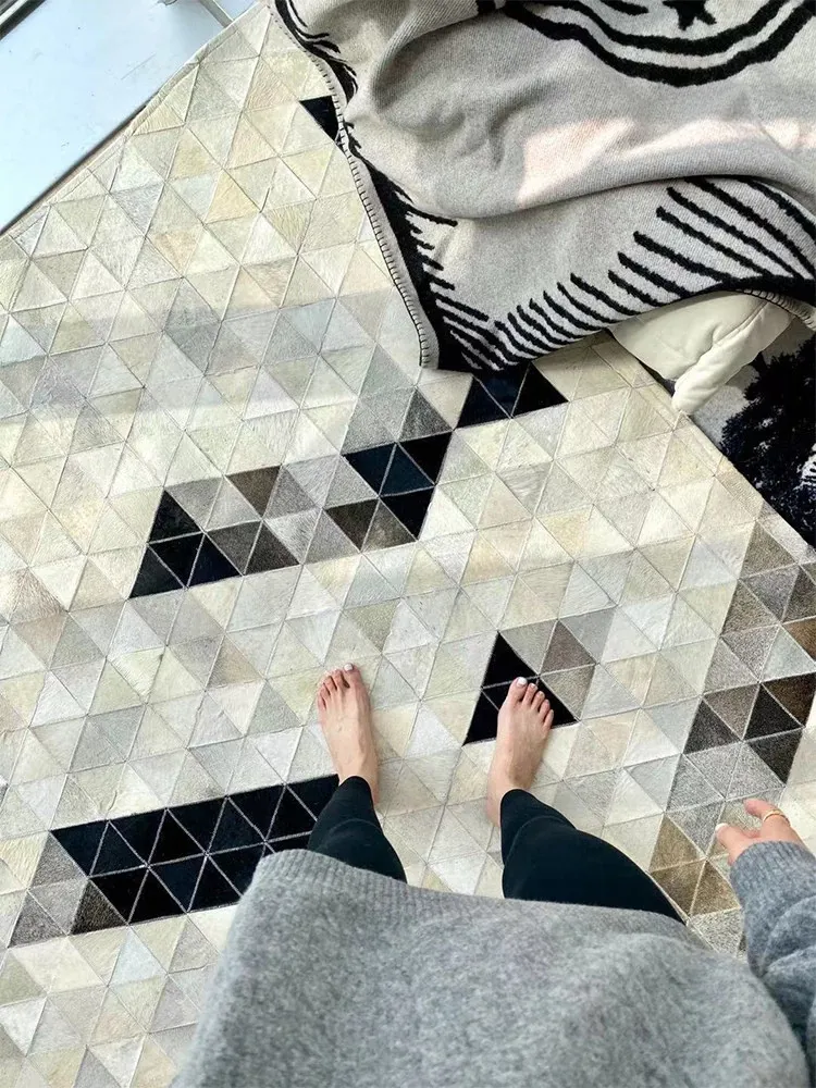 犀牛若奈Diamondsグレー ダイヤモンドシリーズ 本革大邸宅スタイルの真皮中古カーペット - 高級感あふれるデザインで、あなたの空間を特別に演出します!