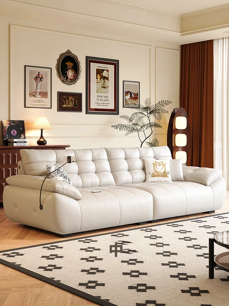 クリーミーな雲のような本革ソファ フレンチスタイルのリビングにぴったり ピアノキー直列デザイン モダンミニマリズム 小型住宅にも最適な皮革ソファ